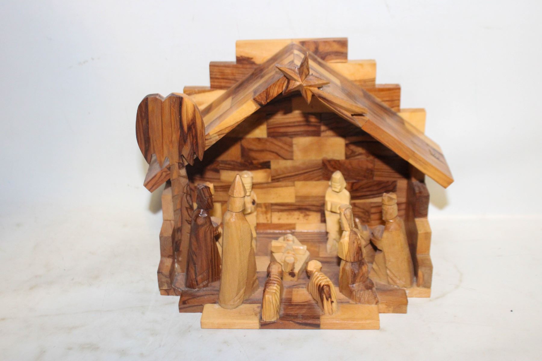 VINTAGE CARVED OLIVE WOOD NATIVITY