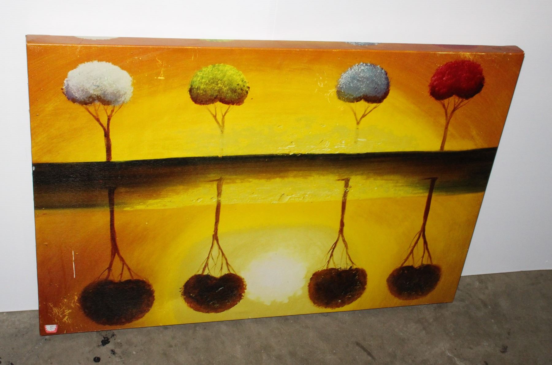 VINTAGE WRAPPED CANVAS PAINTING.HIGHT 60 INCHES, LENGTH 90 INCHES.