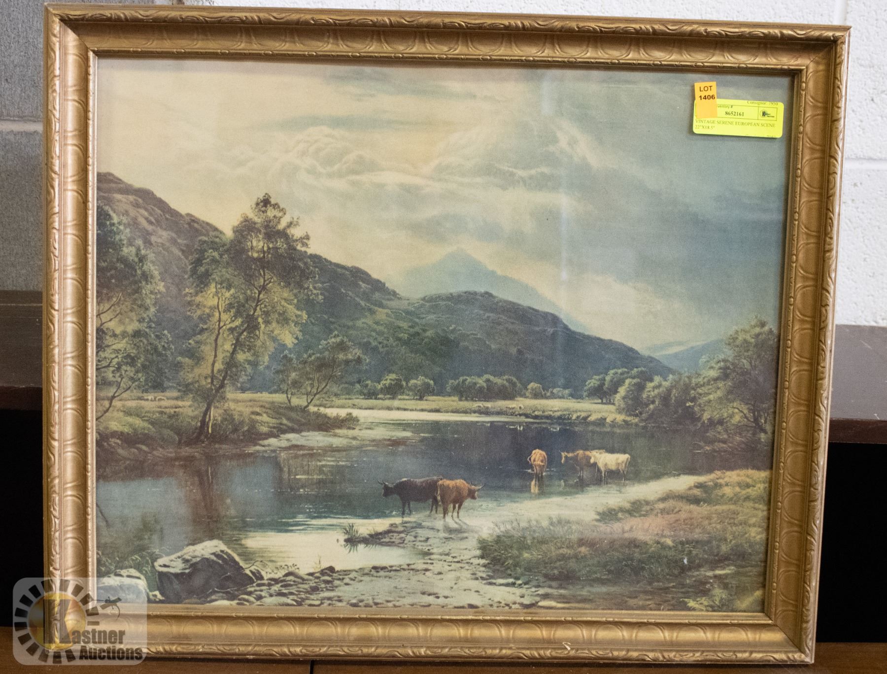 VINTAGE SERENE EUROPEAN SCENE 22" X 18.5"