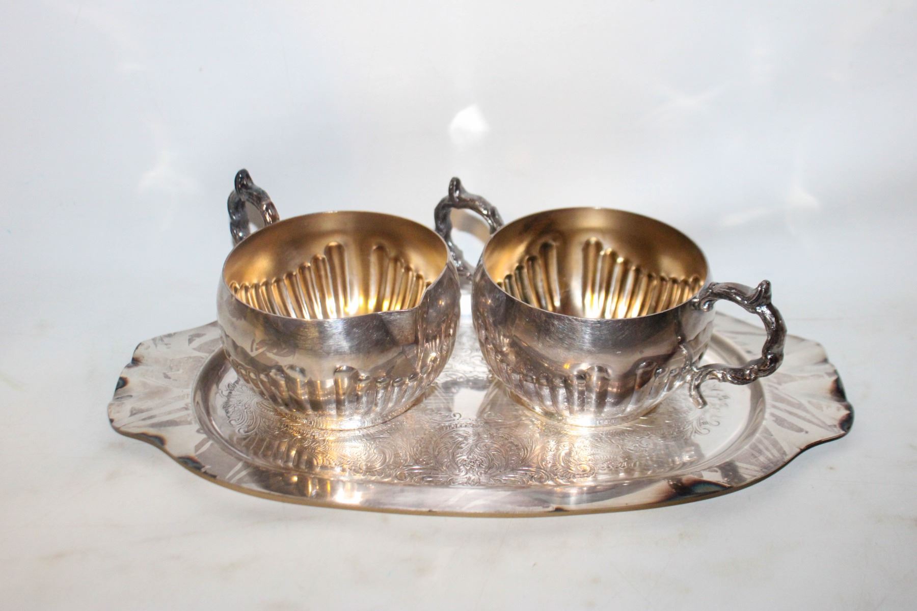 VINTAGE SILVER PLATE COPPER CREAM & SUGAR SET