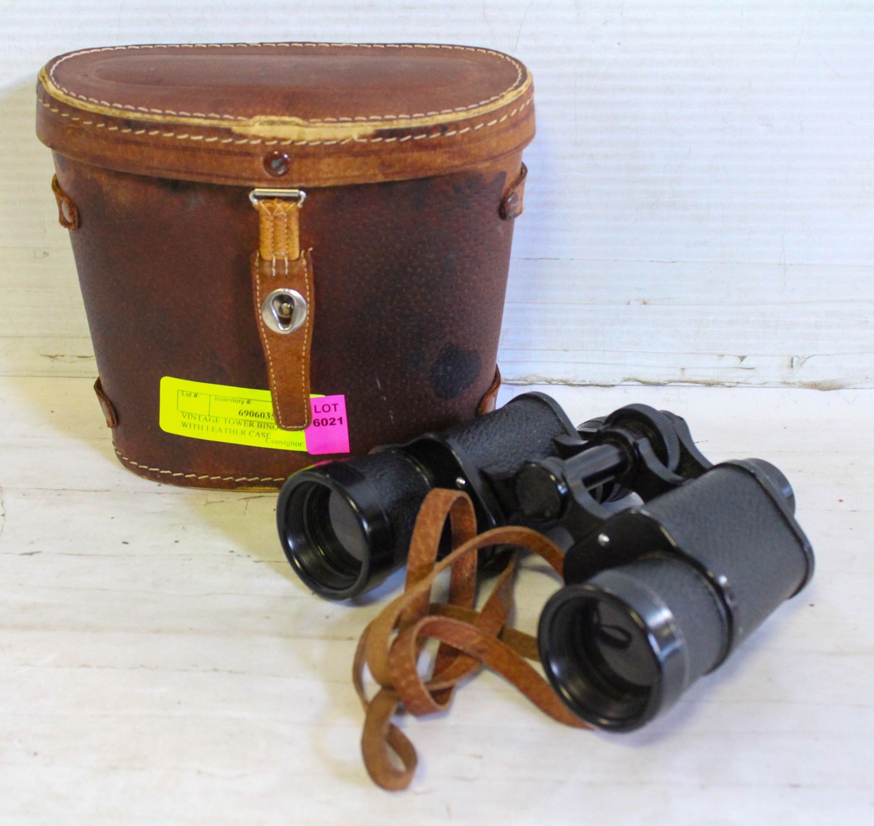 VINTAGE TOWER BINOCULARS WITH LEATHER CASE