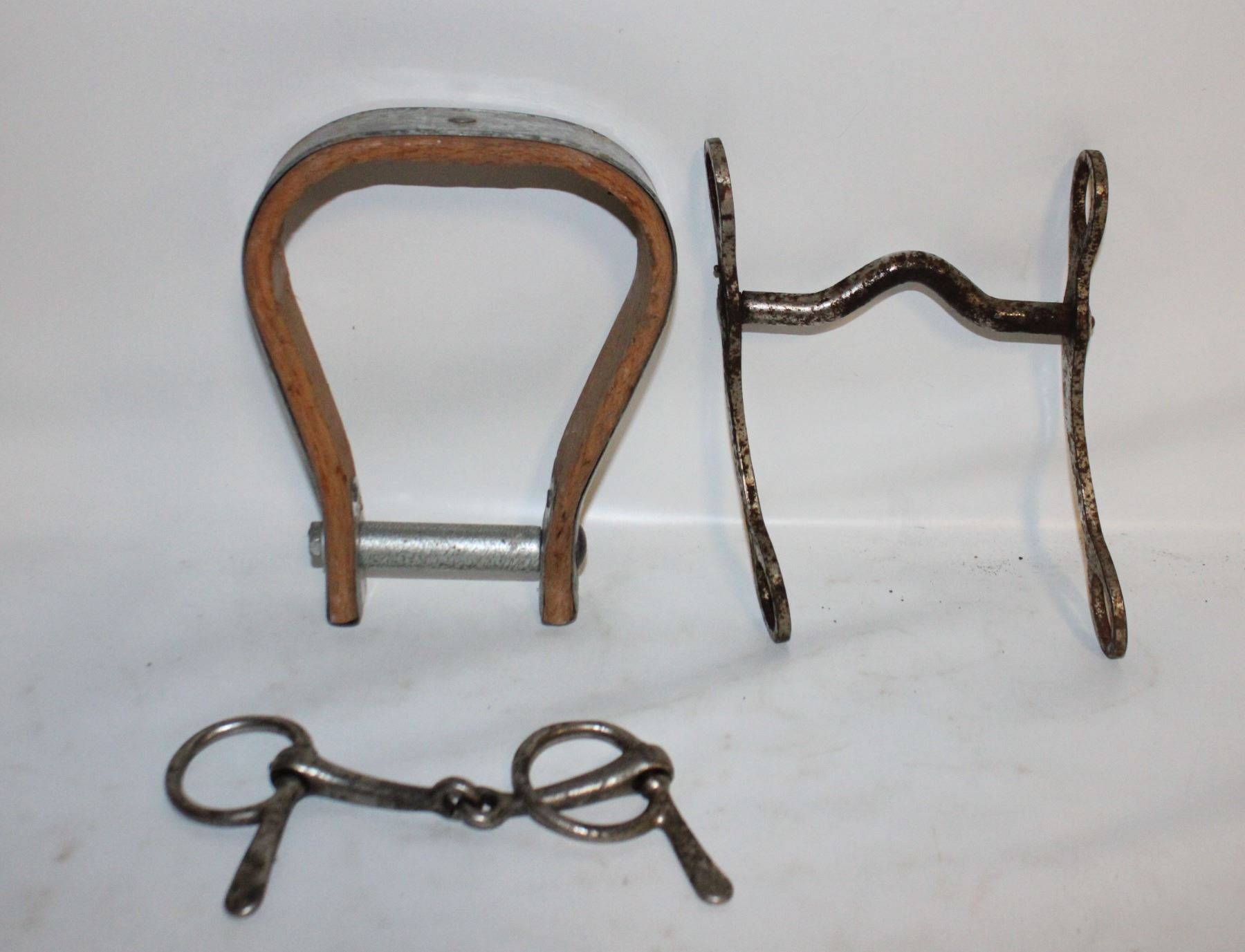 VINTAGE WESTERN COWBOY HORSE STIRRUP & METAL BITS