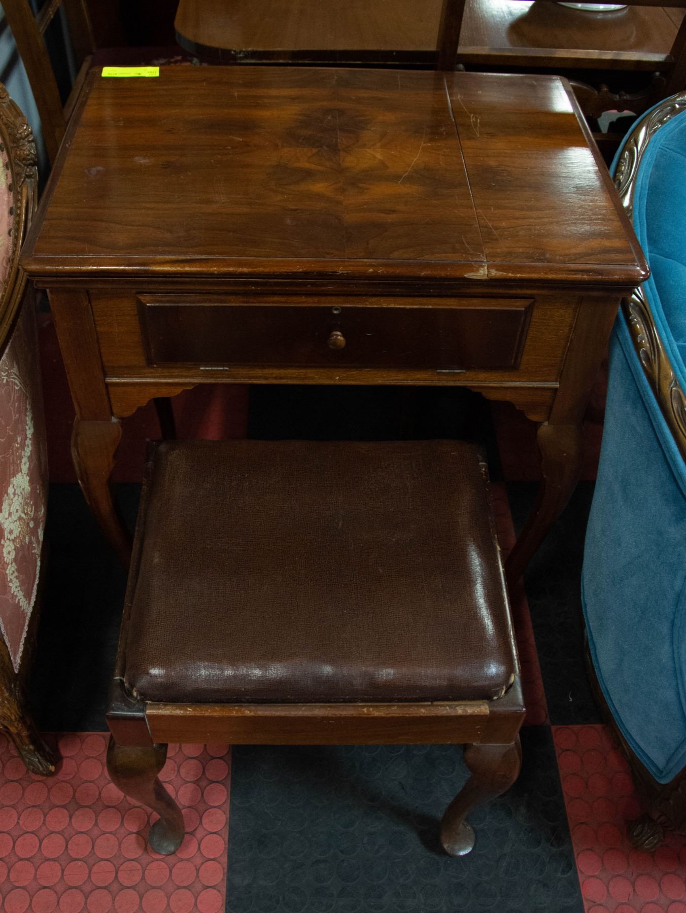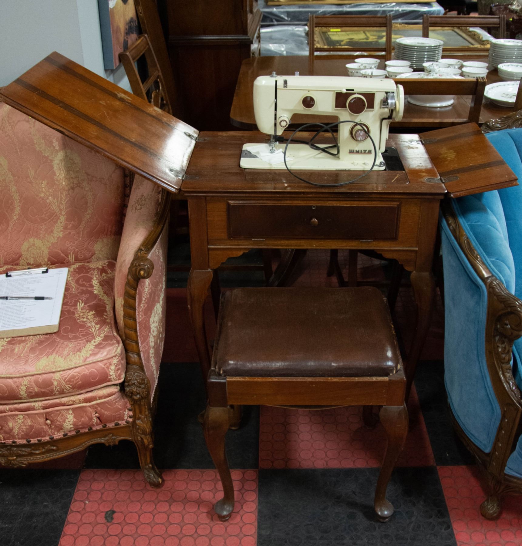 VINTAGE WHITE SEWING MACHINE IN CABINET W/STOOL