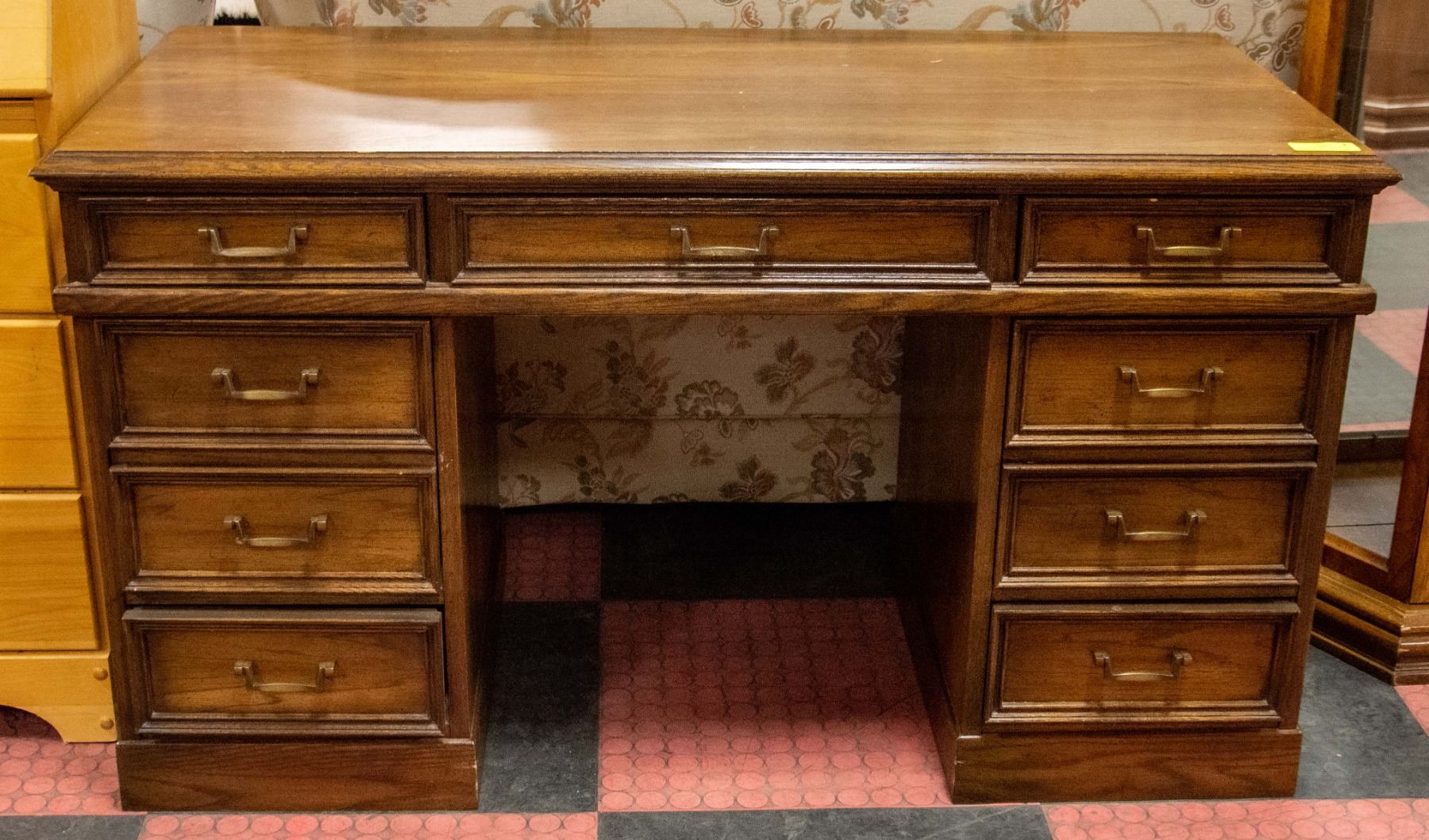VINTAGE WOODEN OFFICE DESK H-30" W-24" L-52"