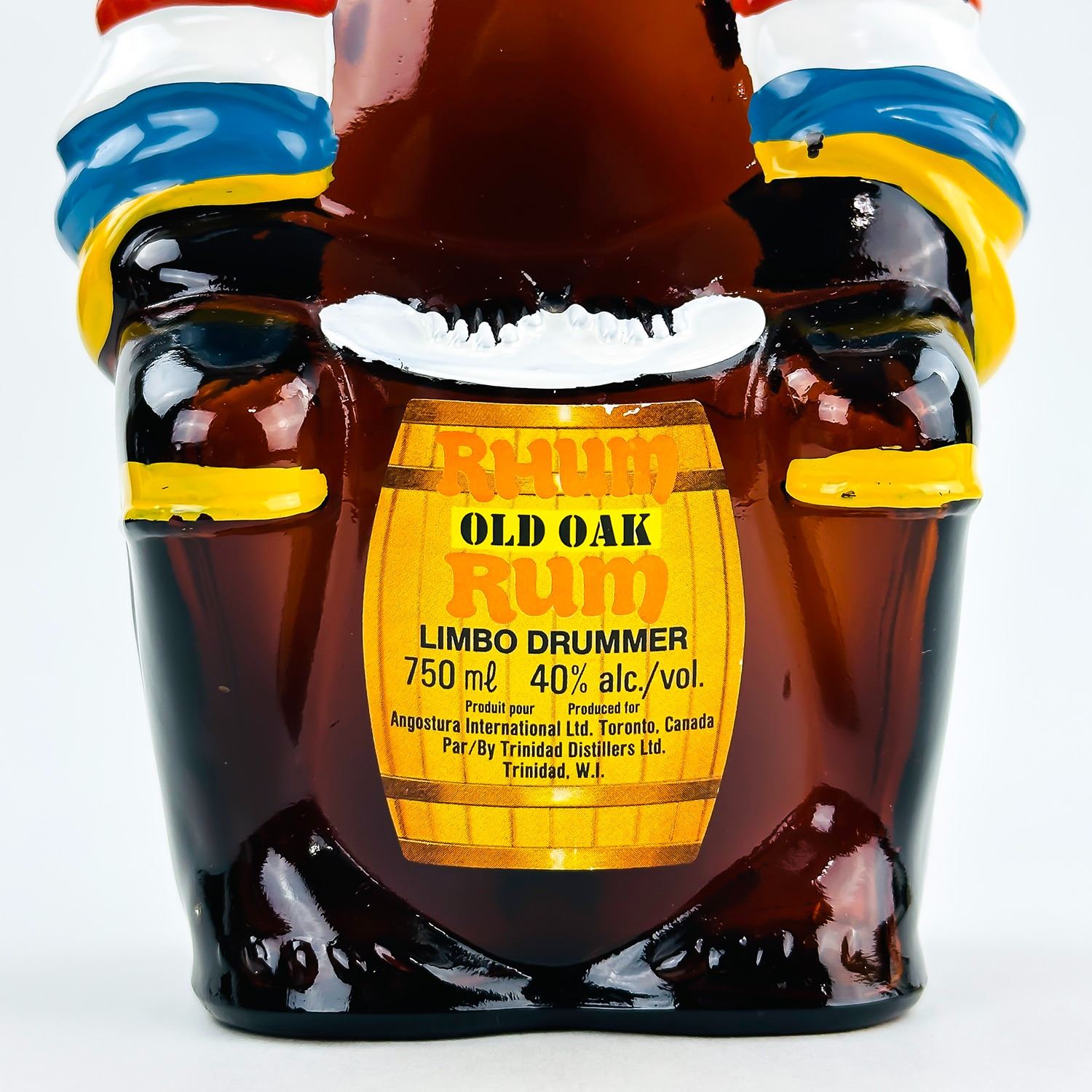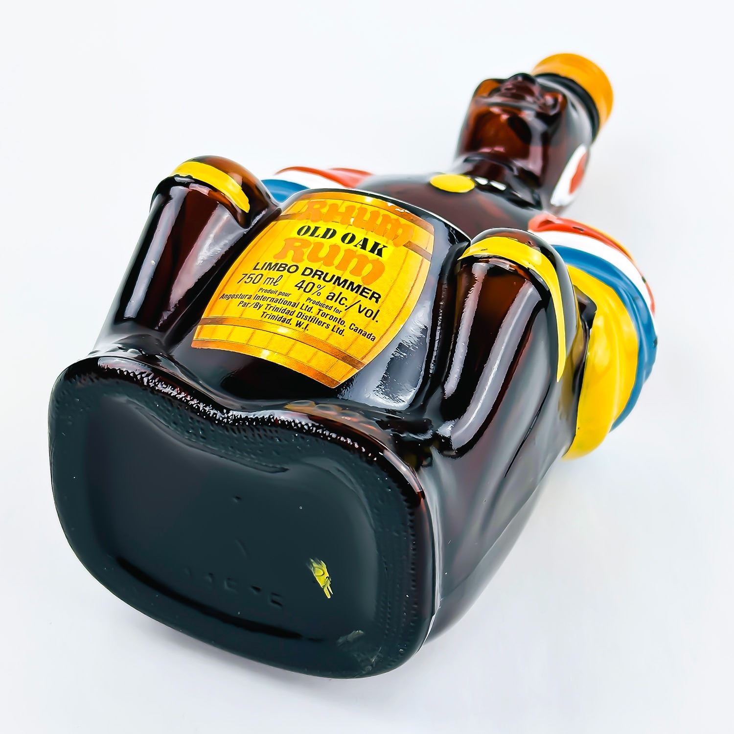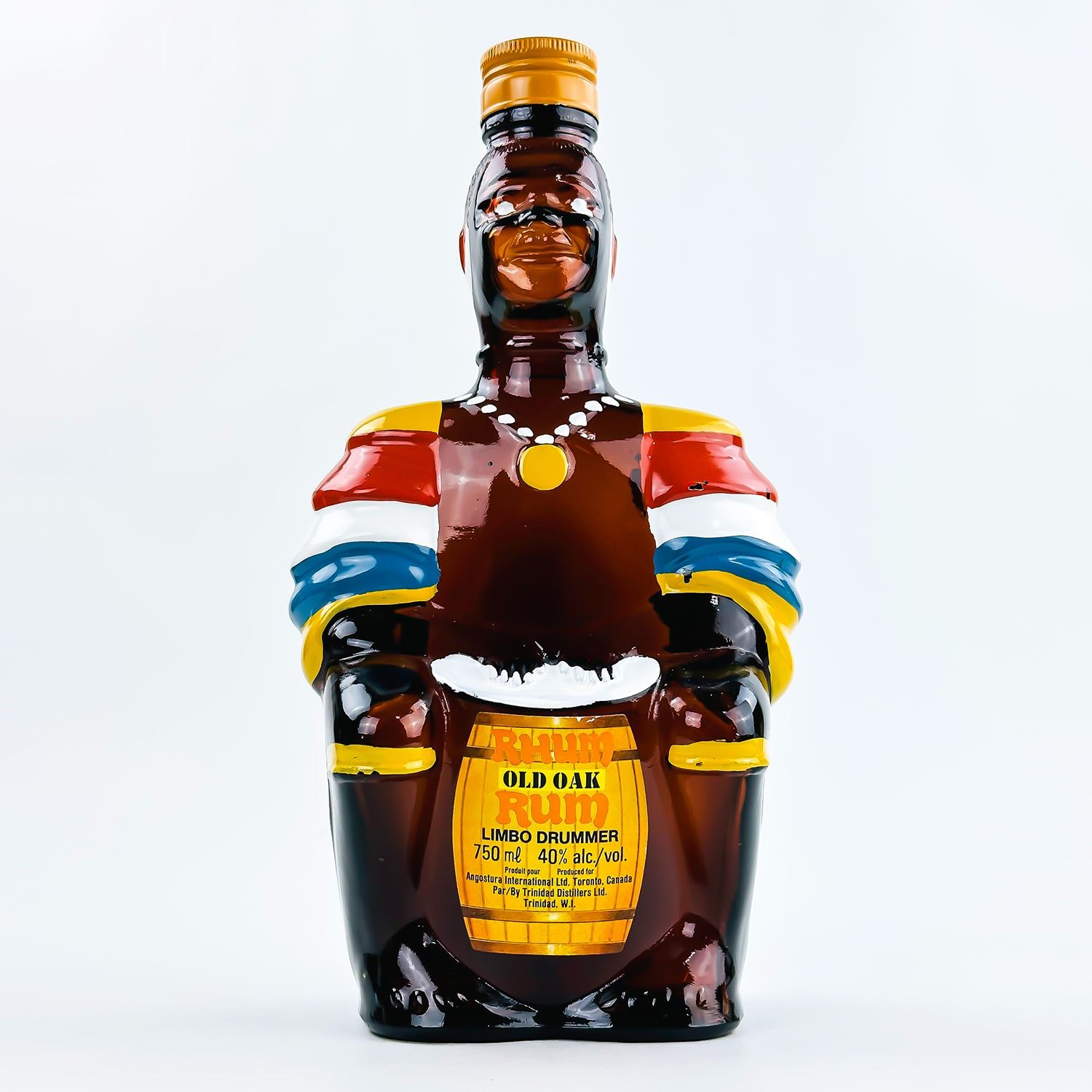 #9120 - EMPTY VINTAGE BROWN GLASS OLD OAK RUM BOTTLE - ANGOSTURA TRINIDAD. MEASURES: 10” (25.5 CM) TALL BY 5.25” (13.5 CM) WIDE AND 3.5” (9 CM) DEEP