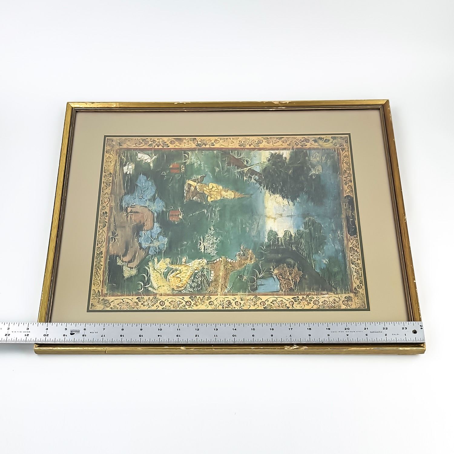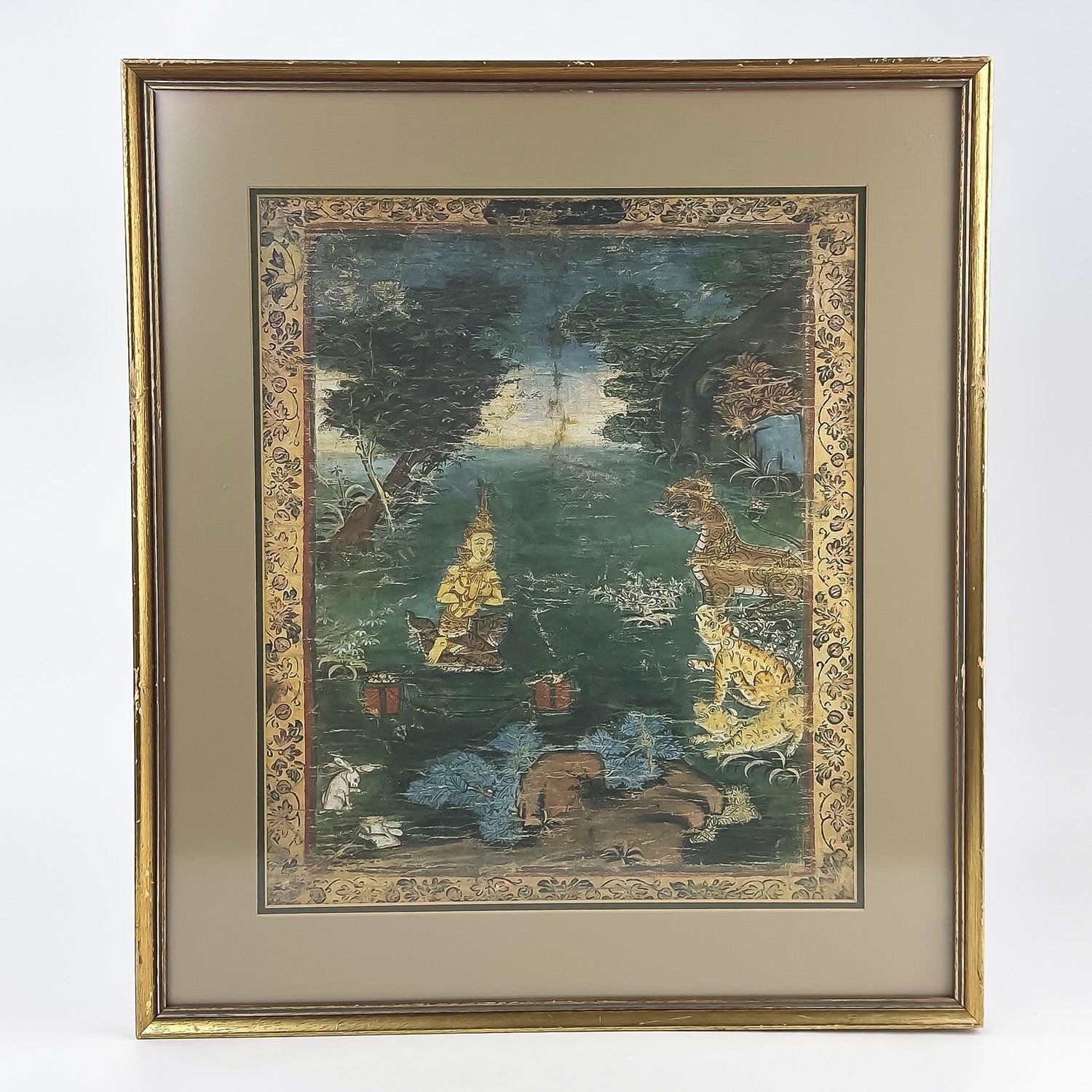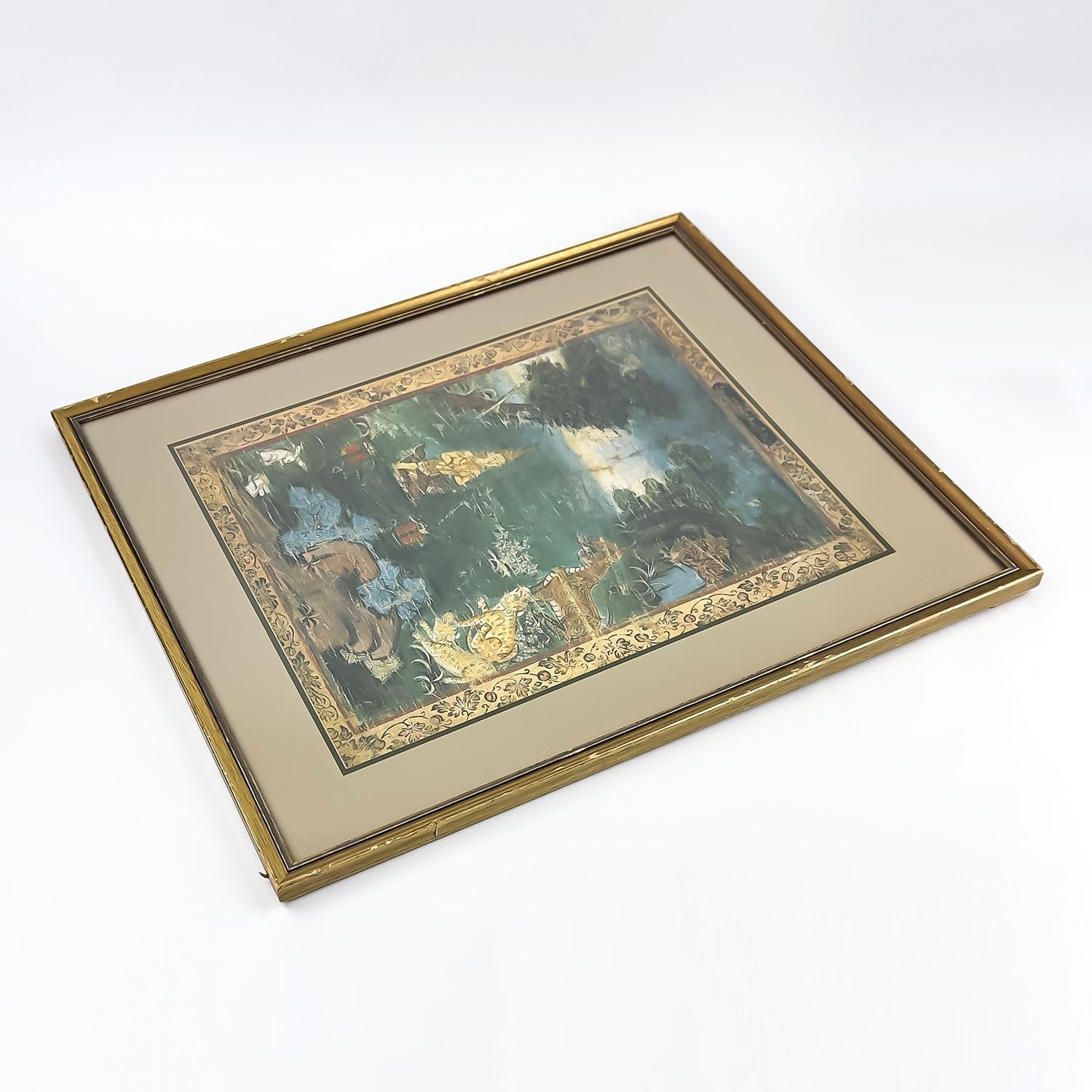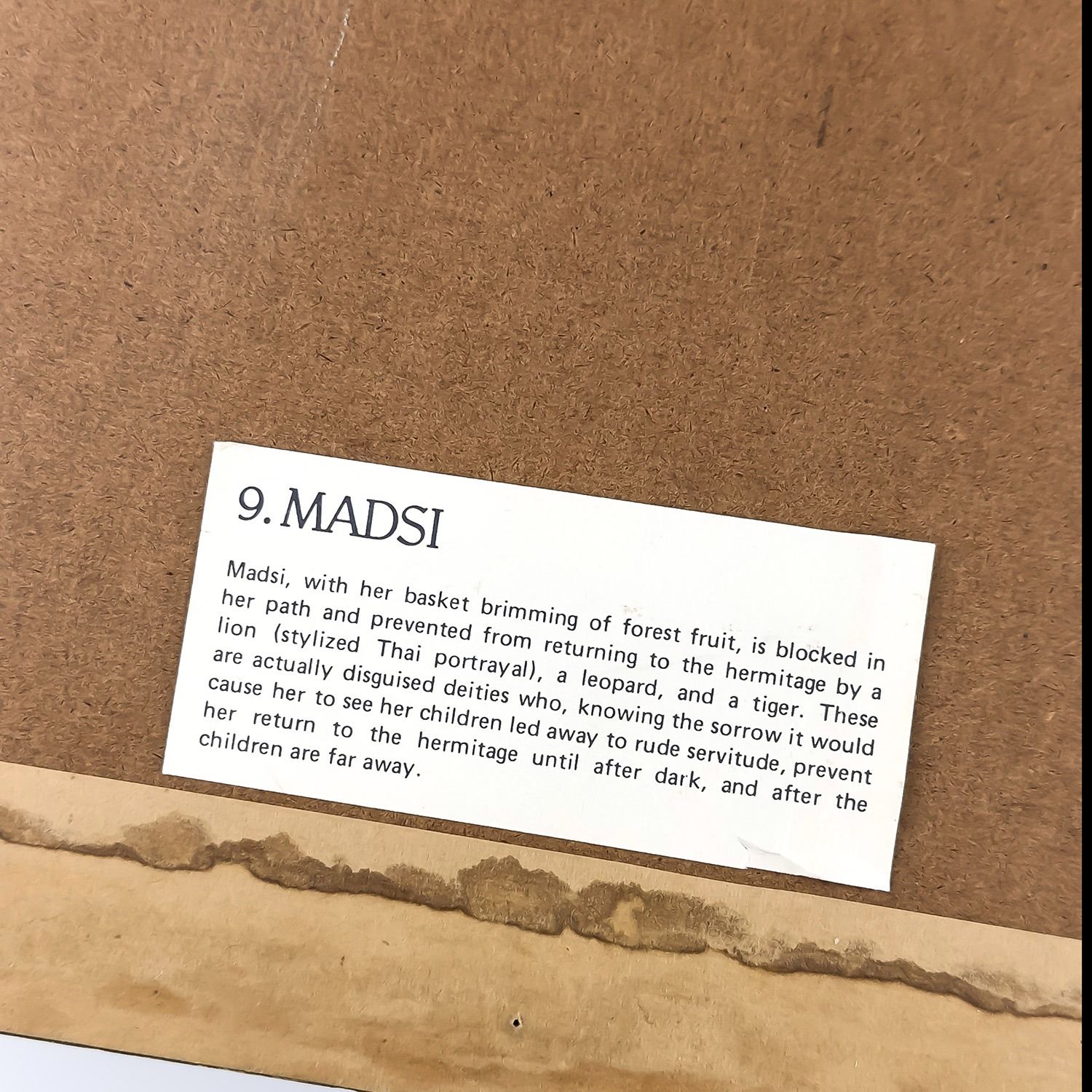 #8927 - VINTAGE FRAMED CHAPTER 9 ART PRINT OF THE VESSANTARA JATAKA THAI TALES TITLED: MADSI - THE WIFE MADDI. FRAMED AND UNDER GLASS. HOME OR OFFICE WALL DECOR ART PRINT. IN FRAME IT MEASURES 20.5” (52 CM) TALL BY 18” (46 CM) WIDE