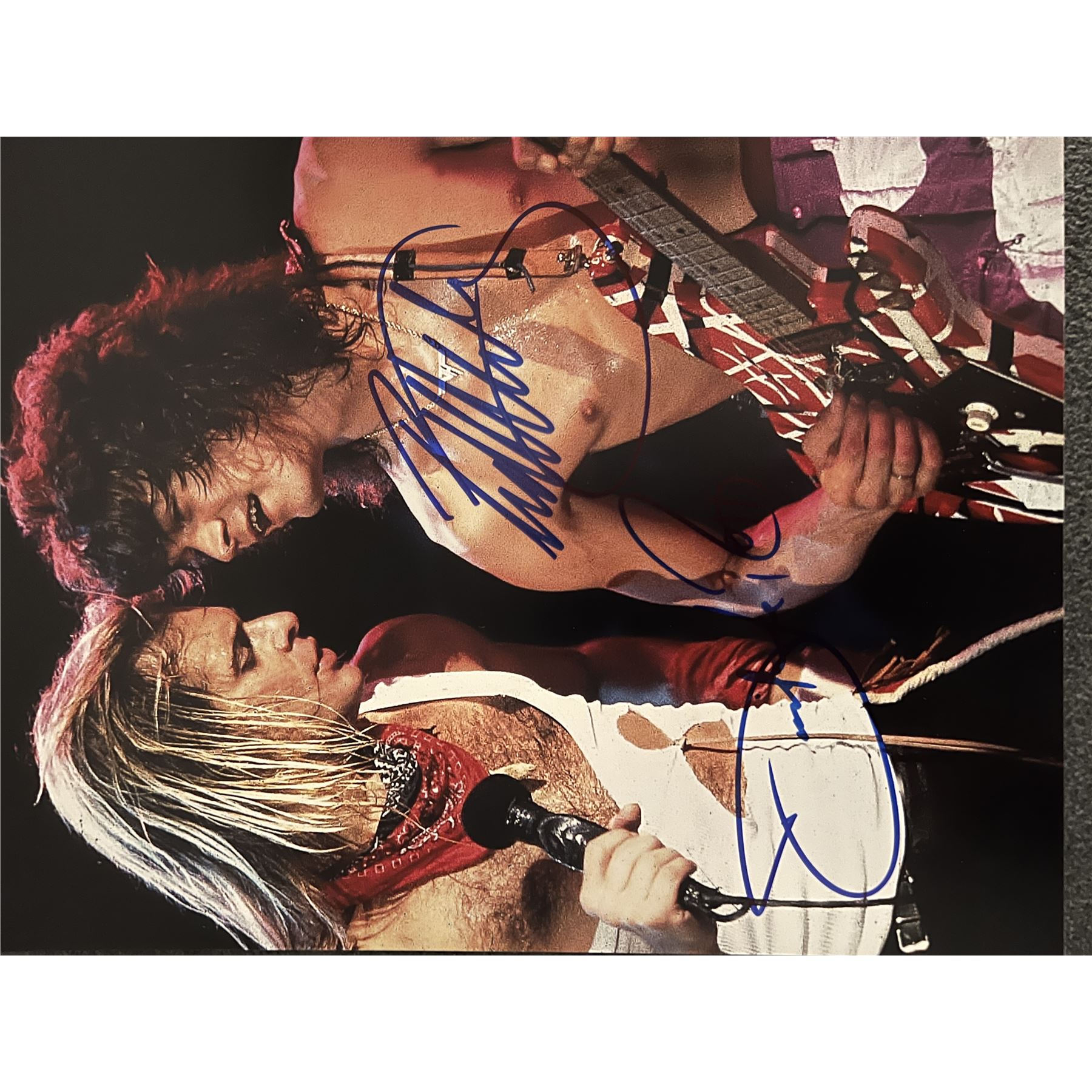 Van Halen band signed photo autographed by David Lee Roth and Eddie Van Halen. 8x10 inches