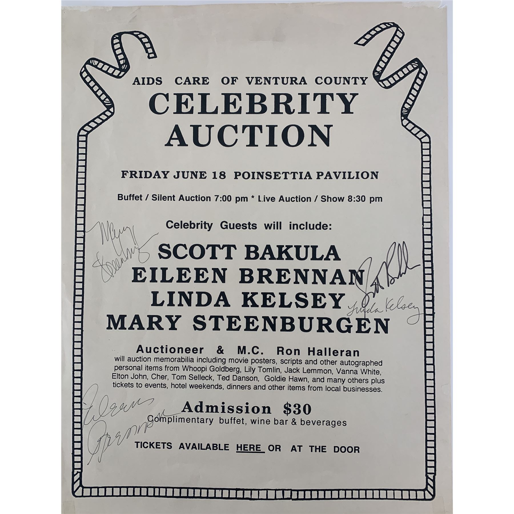 Ventura County celebrity auction signed poster autographed by Scott Bakula, Eileen Brennan, Linda Kelsey and Mary Steenburgen. 18x24 inches