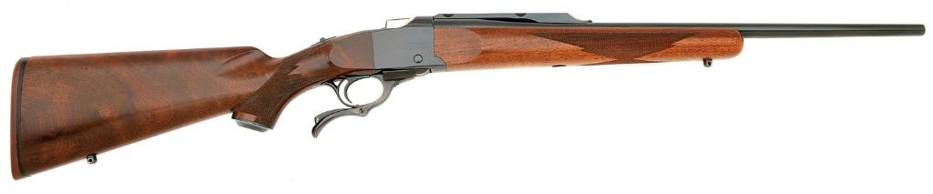 serial #105, 308 Win, 22" light weight barrel with a bright excellent bore. This is a nice AB/S22L rifle with no proof mark on the barrel. The barrel features the early single line address and retains 99% plus original blue while the action retains 98% original blue with only a couple tiny light storage marks on the right side of the receiver, the hand-fitted breechblock is numbered to the gun. The checkered walnut pistolgrip buttstock and semi-beavertail forearm rate near excellent having an attractive straight grain with early-style wraparound checkering on the forearm, the only apology being a small 1/4" shallow dent in the checkering on the left side of the forearm. The buttstock and forearm are numbered "105" in black pen, the forearm hanger is unmarked. The rifle is equipped with a quarter rib and includes a set of early-style vertically split rings in a red cloth bag and a factory manual. The included June 13, 1989 dated factory letter confirms configuration and lists the rifle being shipped in April 1967. To our knowledge there is no verification of any other non-prefix rifles without a proof mark. A near excellent rare variation lightweight No. 1 rifle. (5B11739-121) {C&R} (1800/2400)