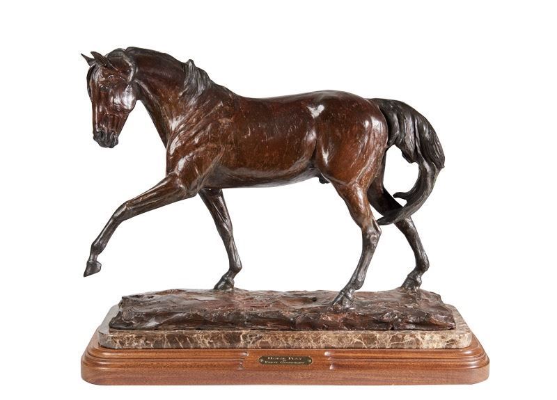 This bronze is in very good condition. To the unaided eye, there are no apparent issues. The marble and wood base is in very good condition. Goldplate: Horse Play By Veryl Goodnight