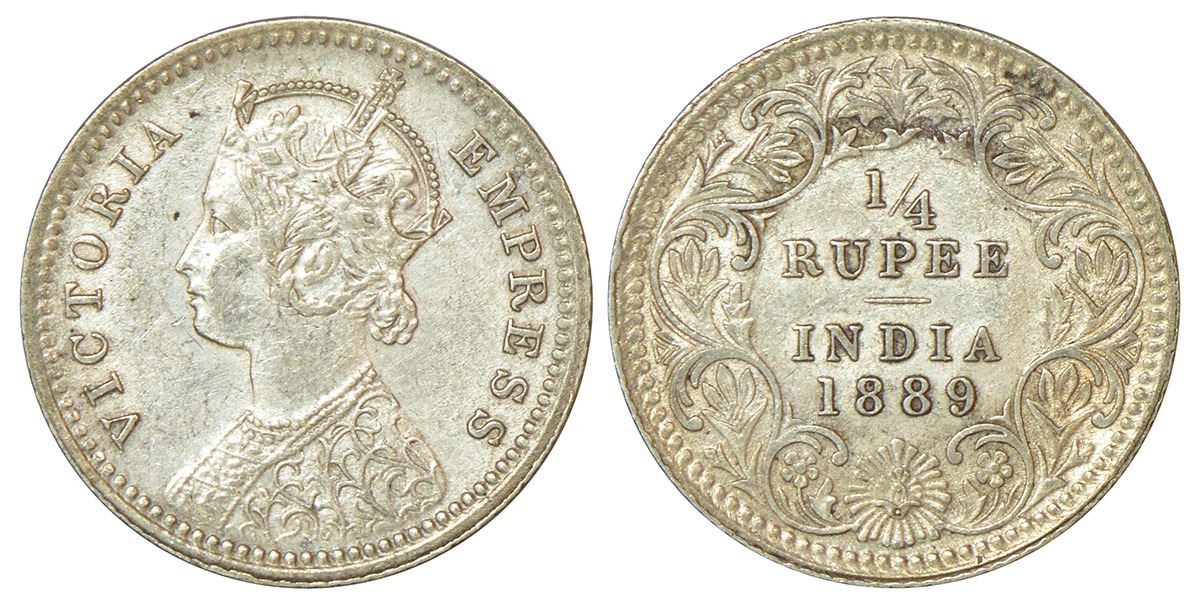 Victoria Empress, silver ¼ rupee, 1889, Calcutta mint, C/II/'C' incused, PR 394, GK 716, 2.88g.