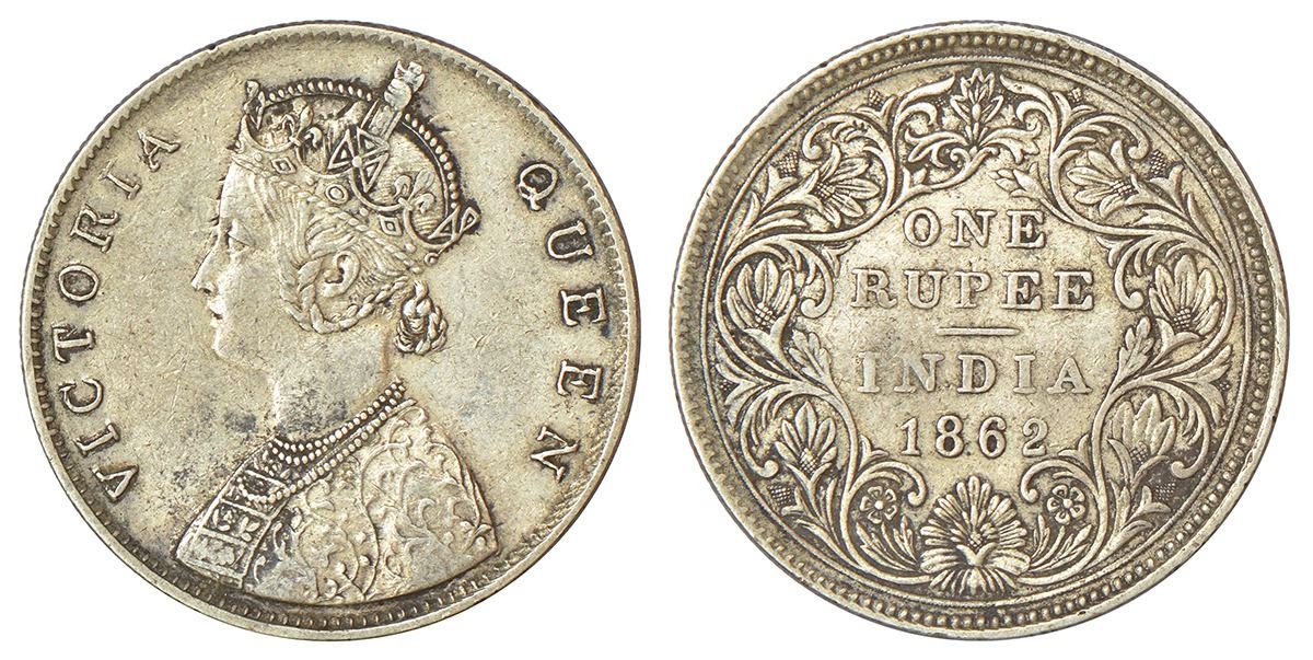Victoria Queen, silver rupee, 1862, Bombay mint, B/II, PR 58, GK 271, 11.56g.