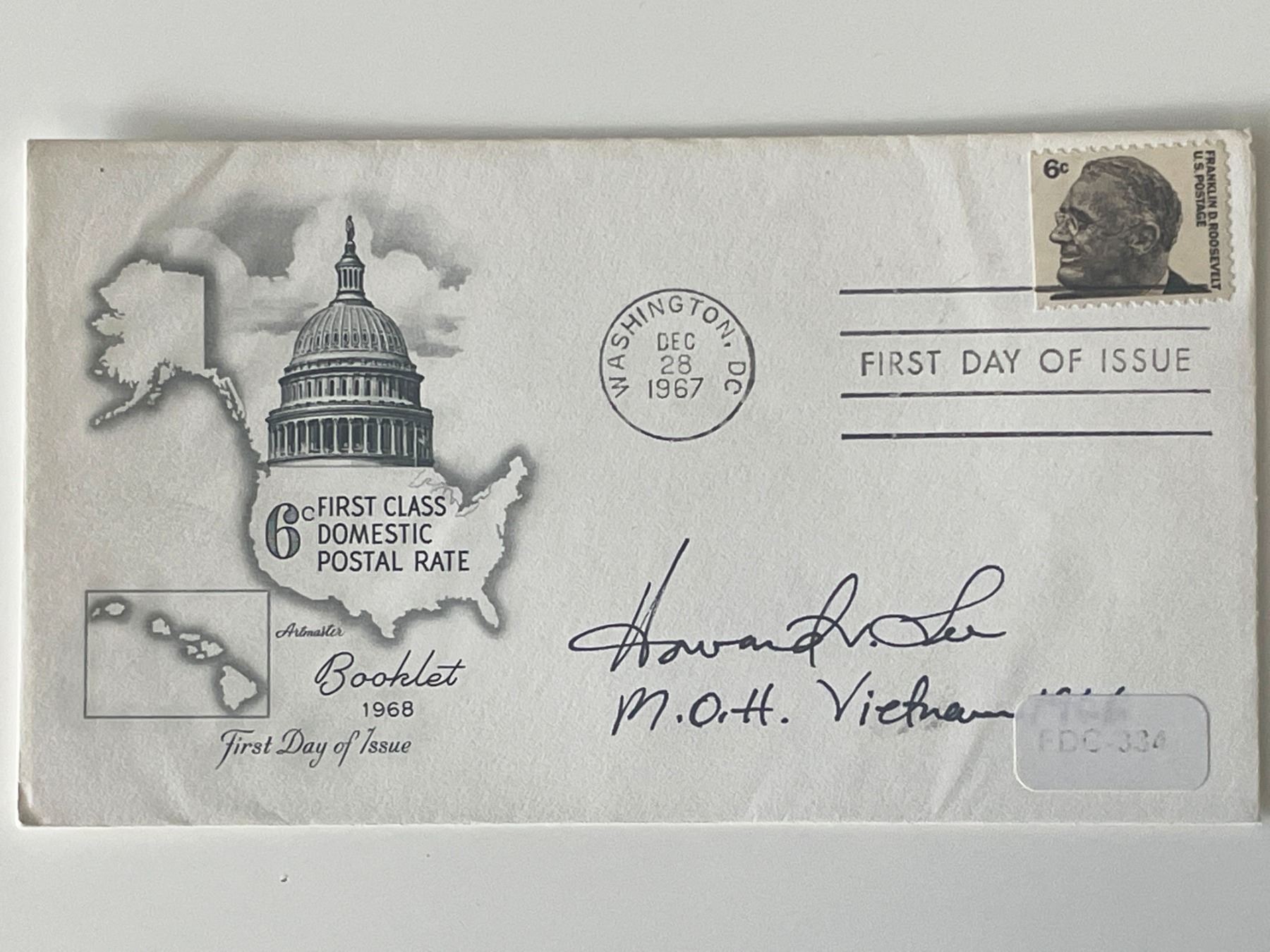 Vietnam Medal of Honor Howard Lee signed cover. 3x6 inches