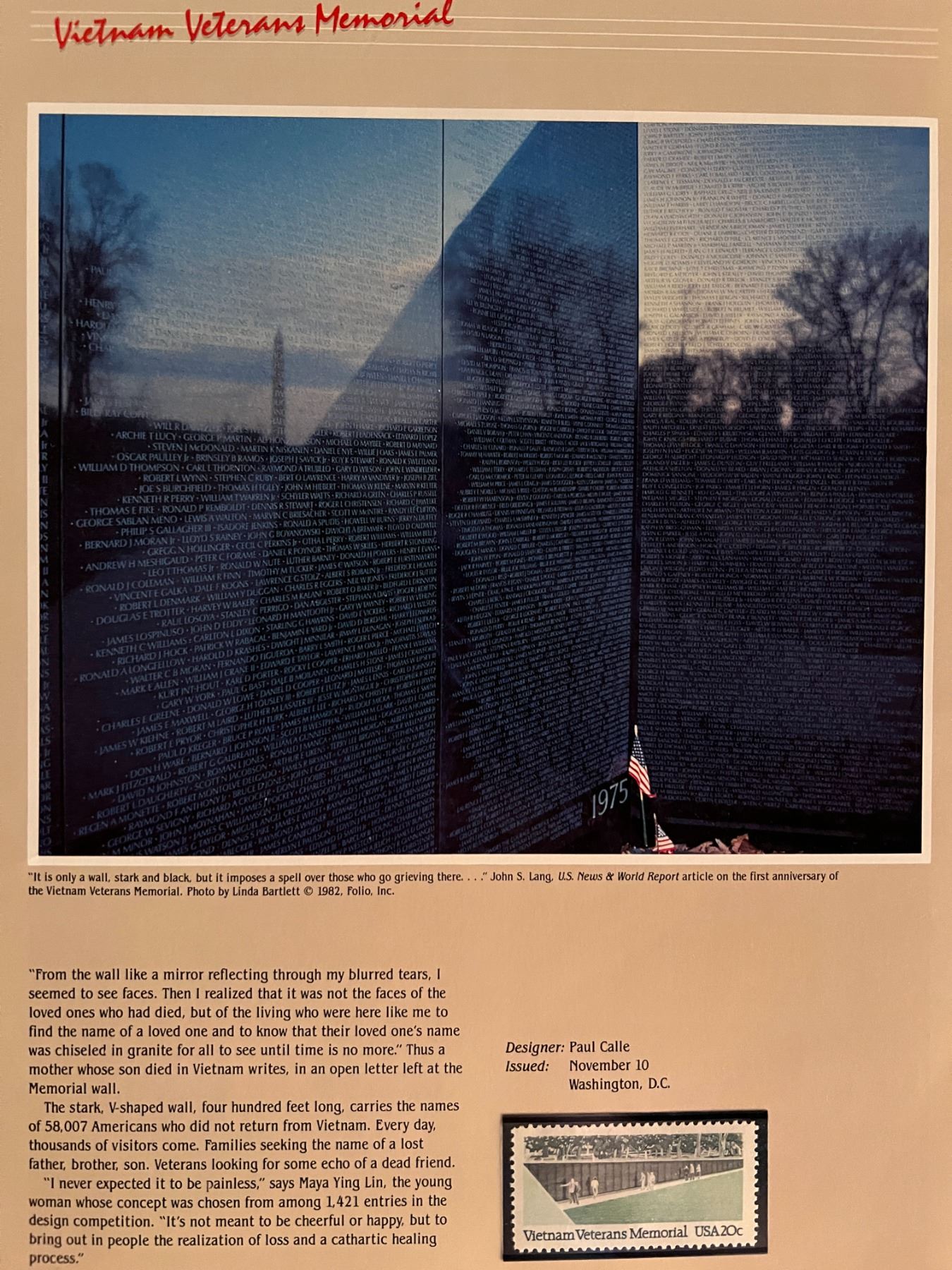 Vietnam Veterans Memorial stamp. 8x11 inches