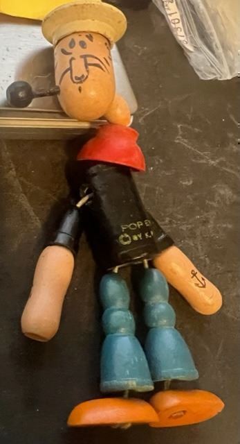 Vintage 1930's Articulated Wooden Popeye the sailor toy Black & Blue version