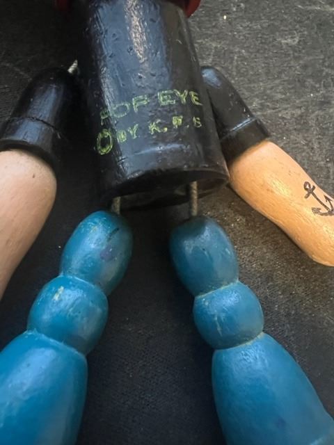 Vintage 1930's Articulated Wooden Popeye the sailor toy Black & Blue version