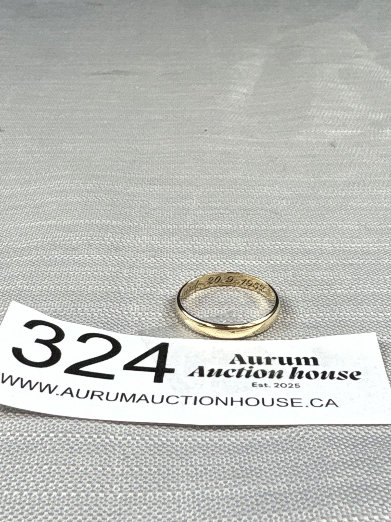Vintage 1950's Low Carat Wedding Ring, Marked 250, Richard 20.9.1952, Size 7 1/2, 25%, 6KT, 1.5 gr,