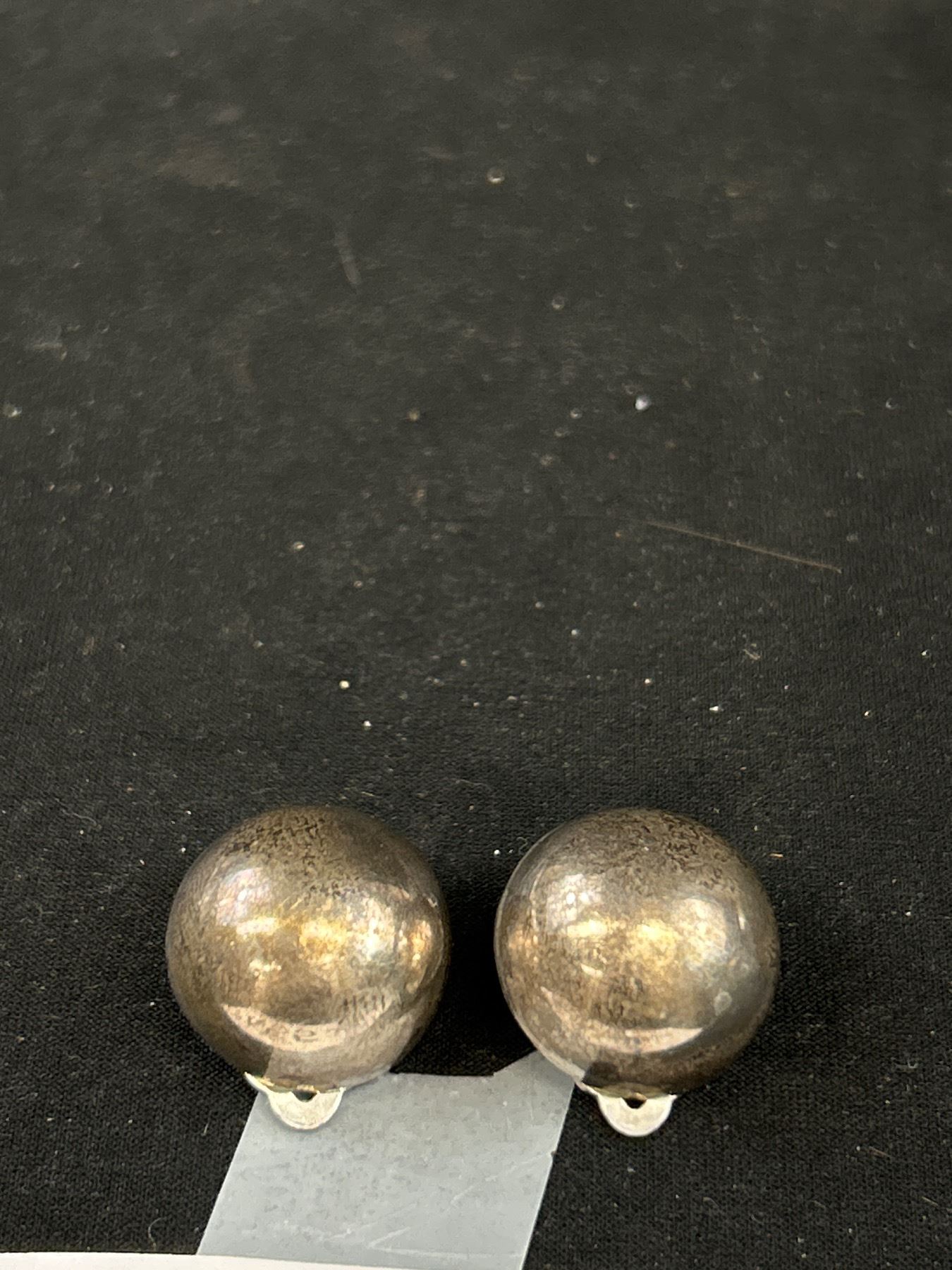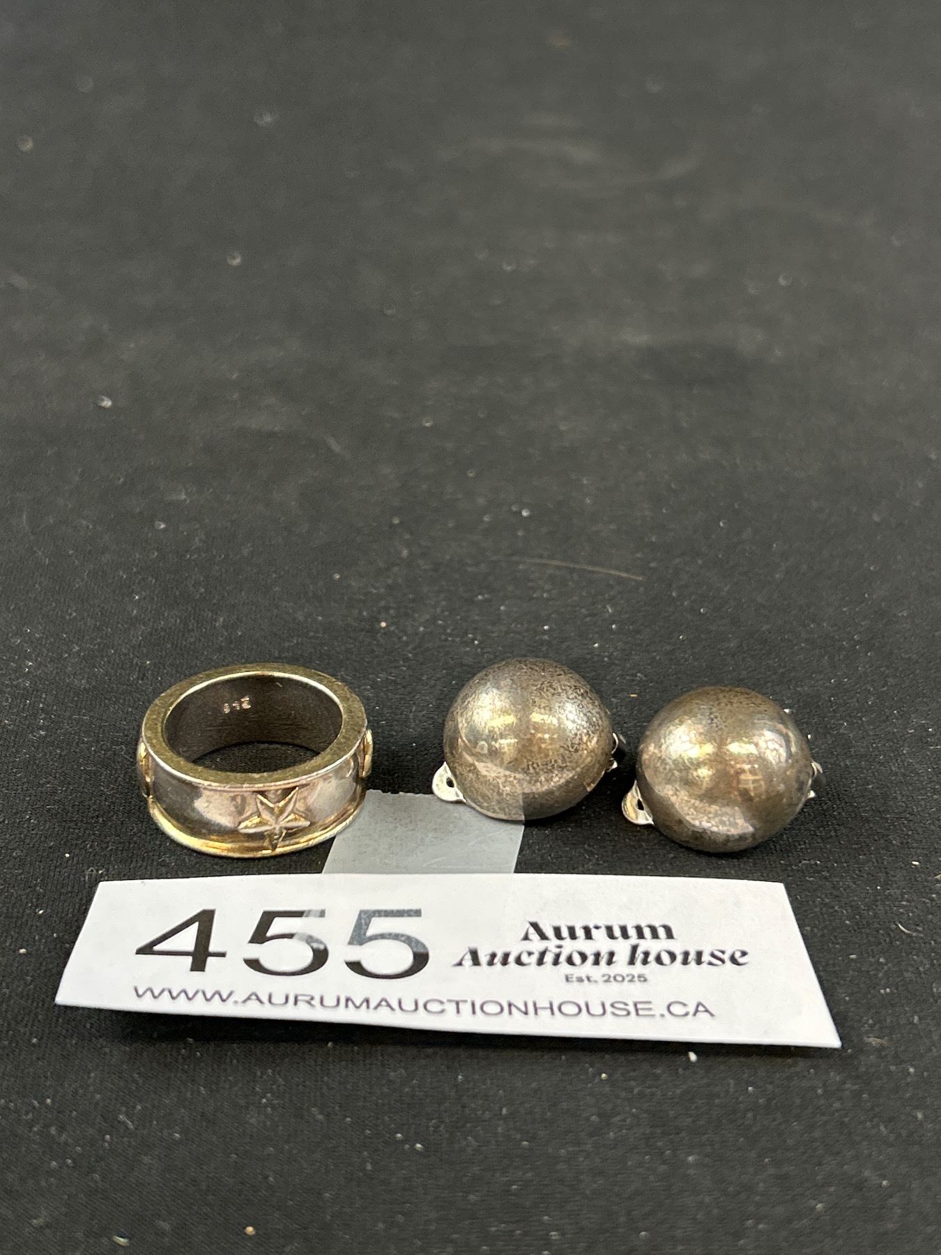 Vintage .925 Sterling Mex Ring and Button Clip Back Earrings