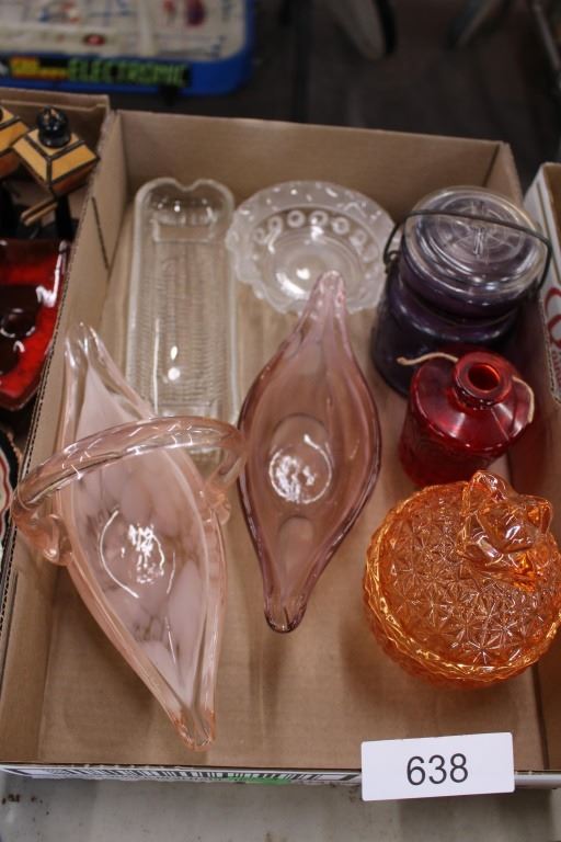 Glass Lidded Jar, Lidded Orange Glass Lidded Dish