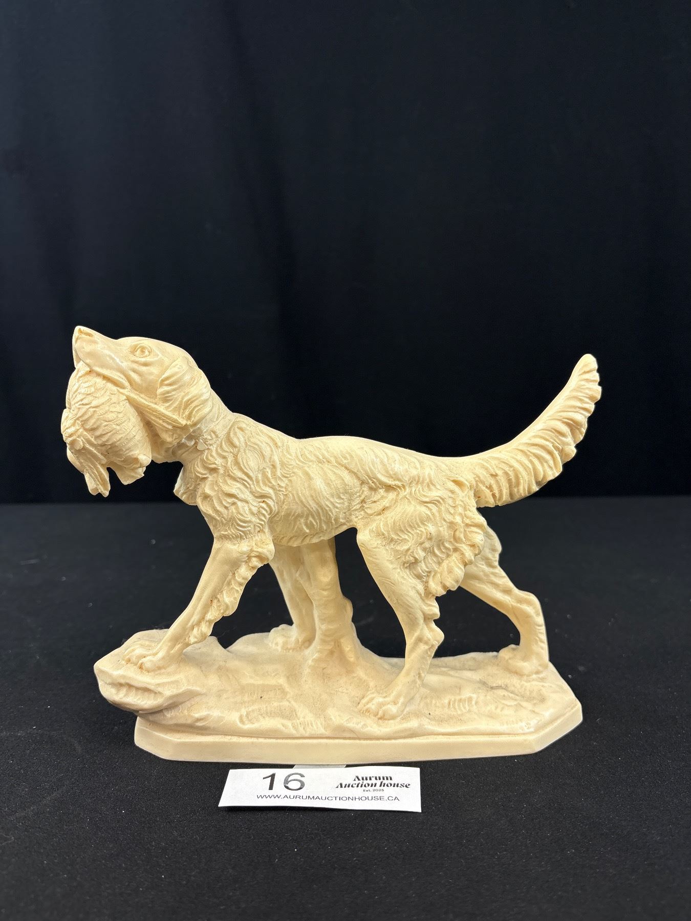 Vintage Carved Figurine Hunting Dog 7"Tall 9" Long