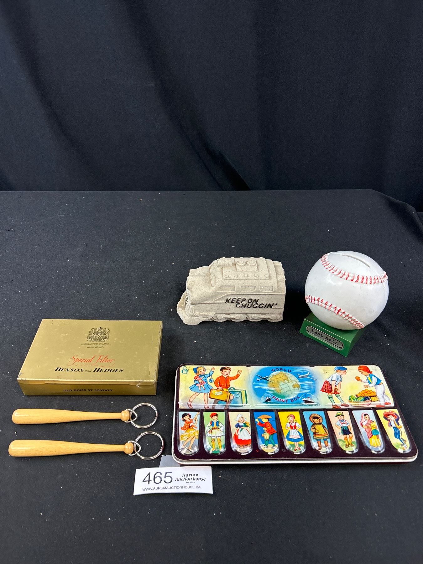 Vintage Collectibles - Baseball Bank, B&H Tin, Paint Box and More