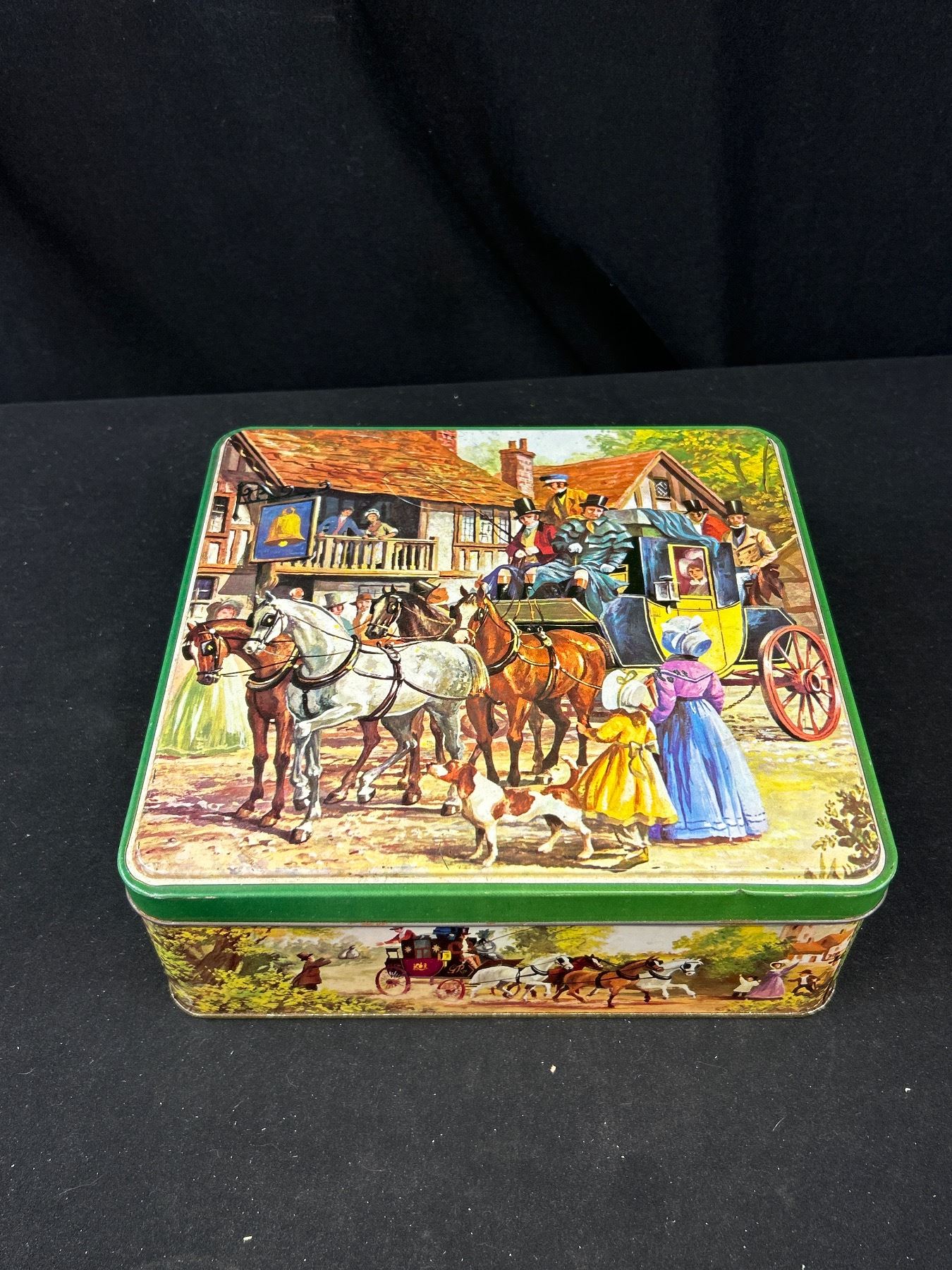 Vintage Collectibles - Large Pussers Rum Decanter, Cracker Jack, English Biscuit and Homestyle Cookies Tins