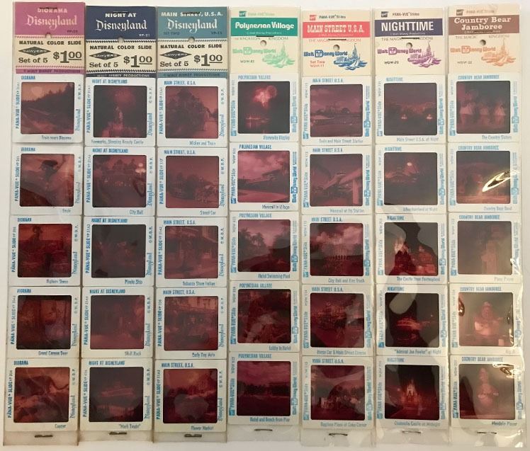 (Disneyland, c. 1960's-70's). A set of vintage slides from Disneyland including "Night at Disneyland", "Diorama Disneyland" and "Main Street, U.S.A. Disneyland." The slides are in good condition with normal wear from age and minimal handling. Item comes with a Grand Circle Tour Auctions COA.