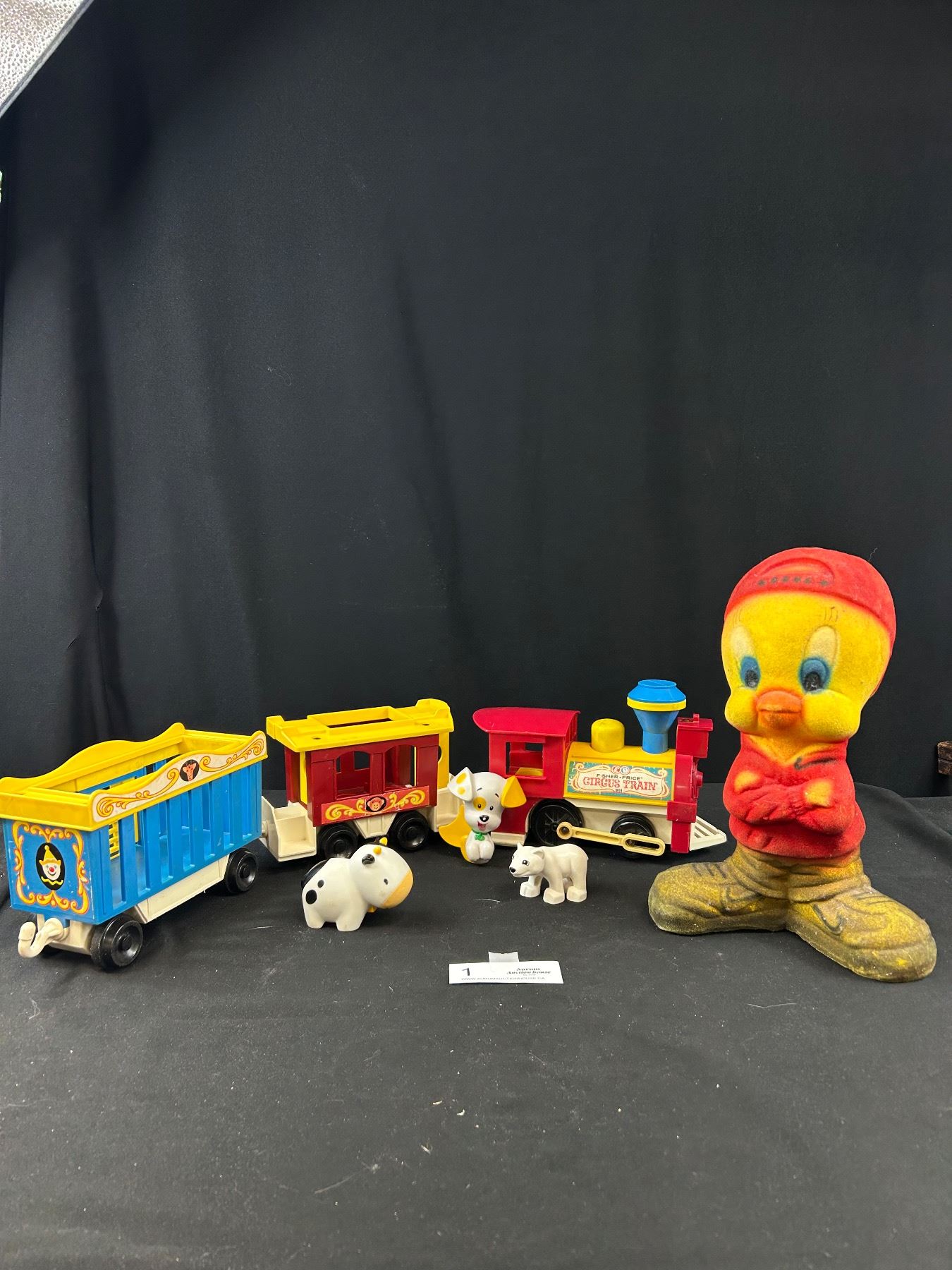 Vintage Fisher Price Circus Train + 11" Tall Tweety Bird Piggy Bank