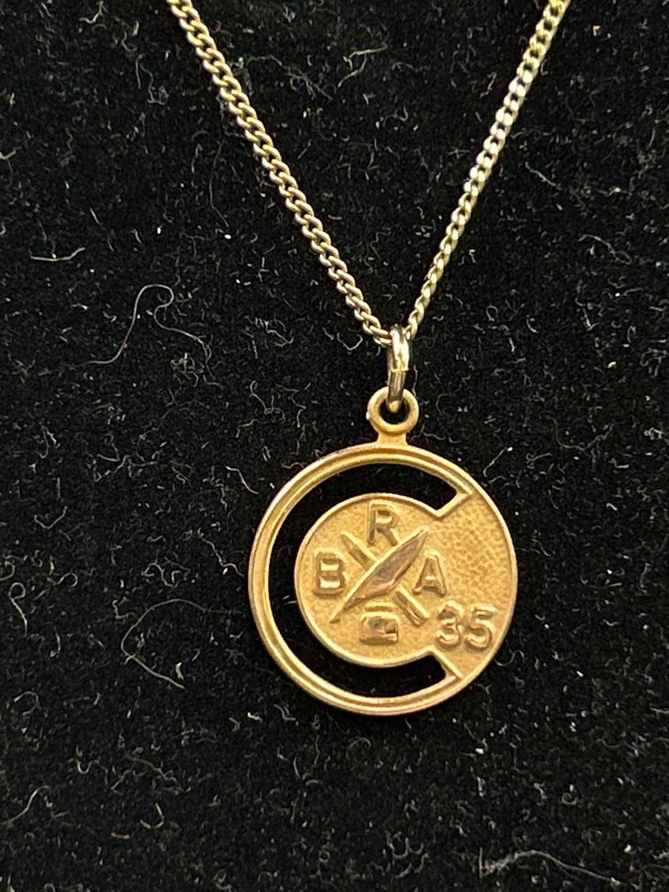 Vintage Gold BRA 35 Pendant w/ Chain Necklace Marked 1/20 12K, 15" L