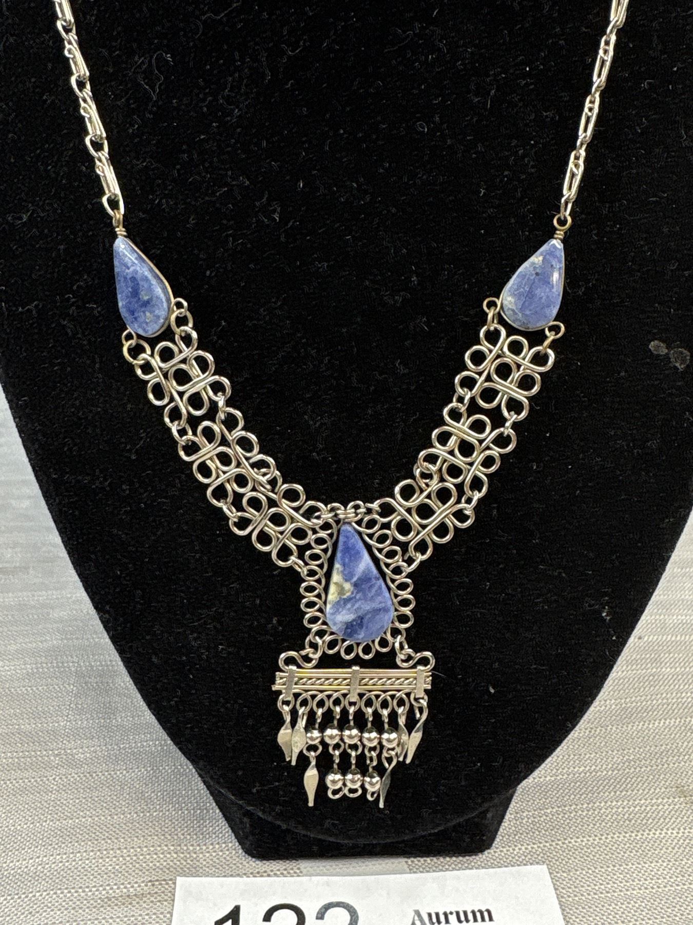 Vintage Hand Crafted Silver Filigree w/ Blue Stones Necklace