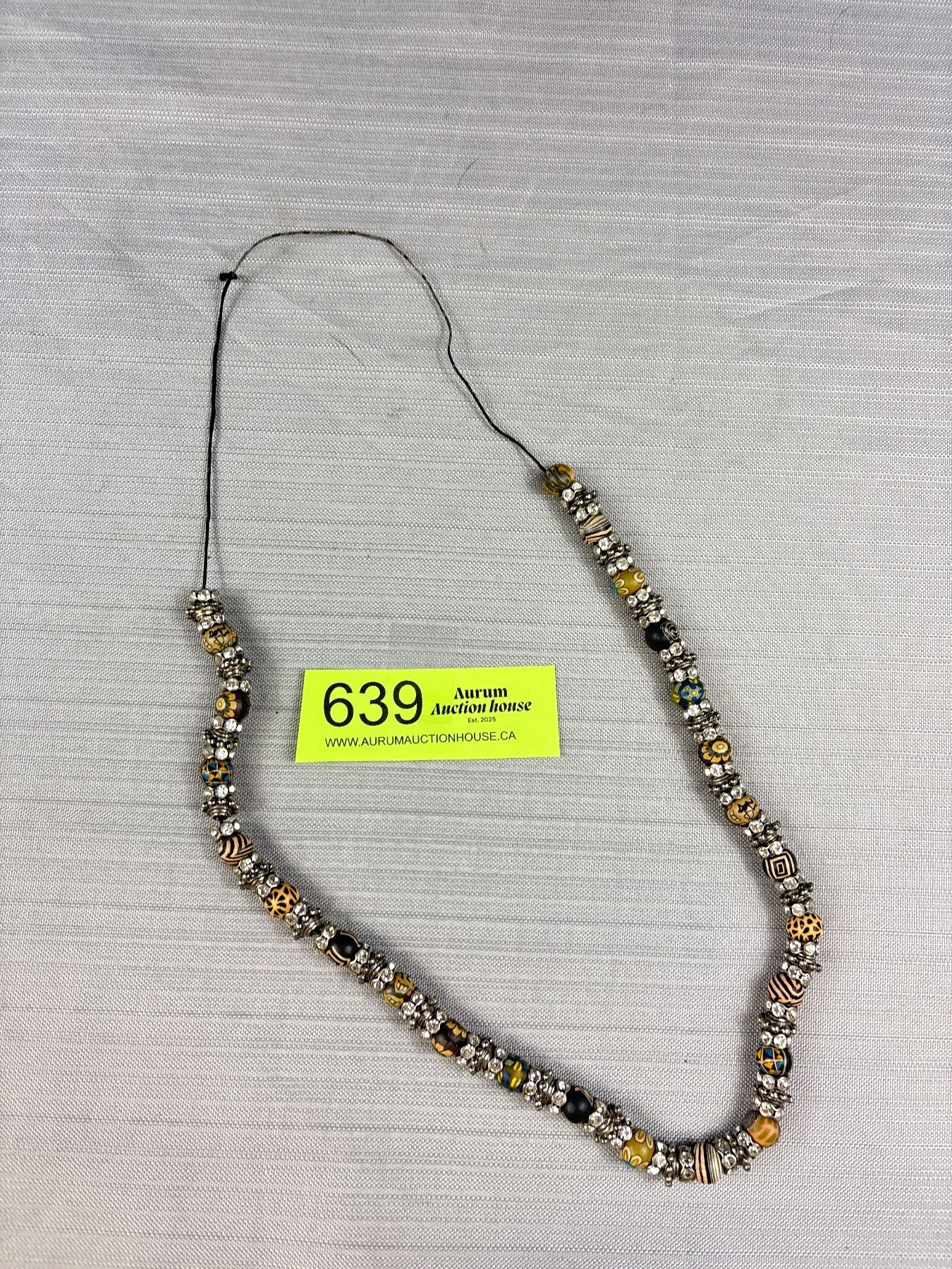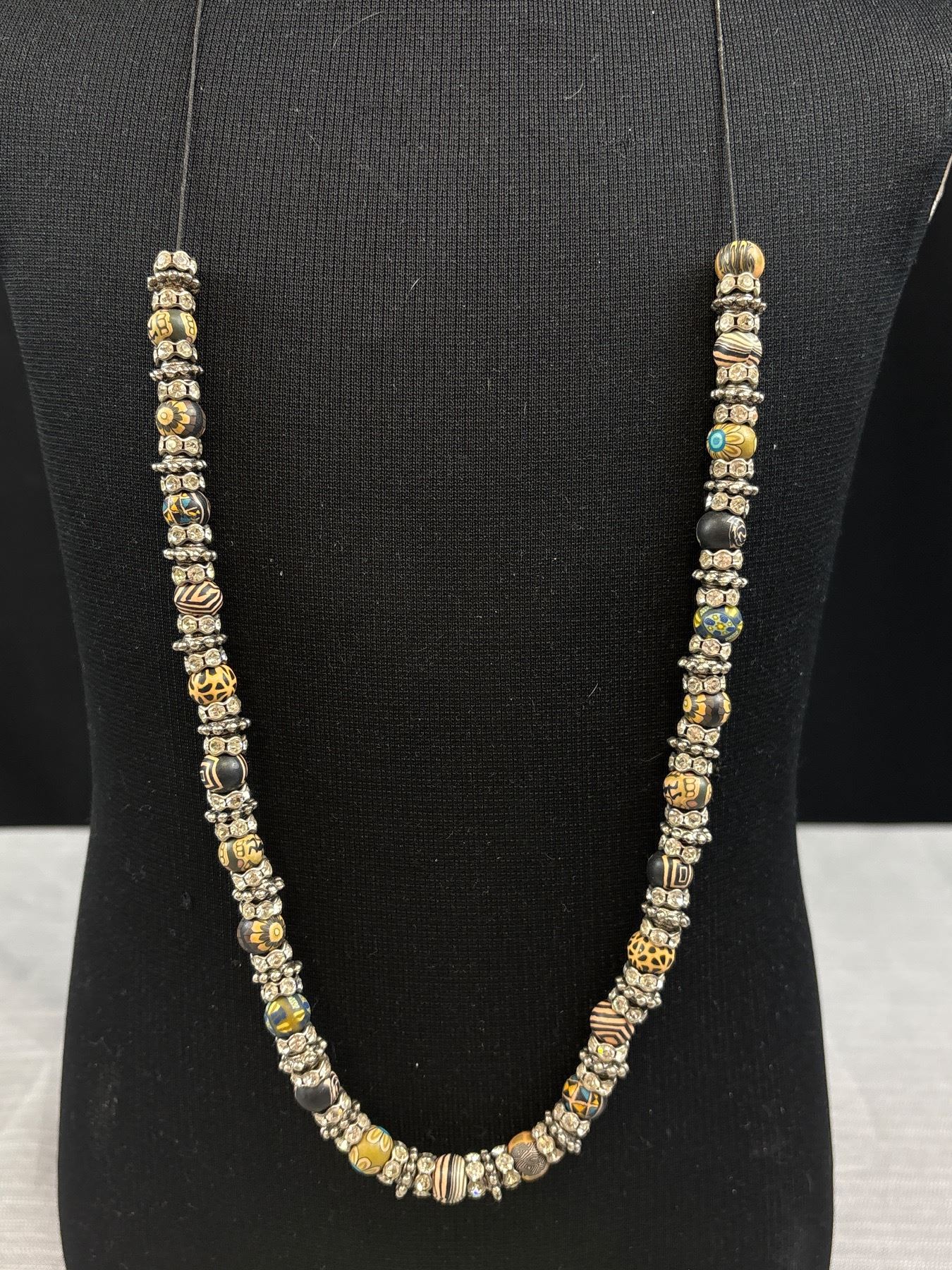 Vintage Hand Painted Beads w/ Rhinestone Spacers Necklace