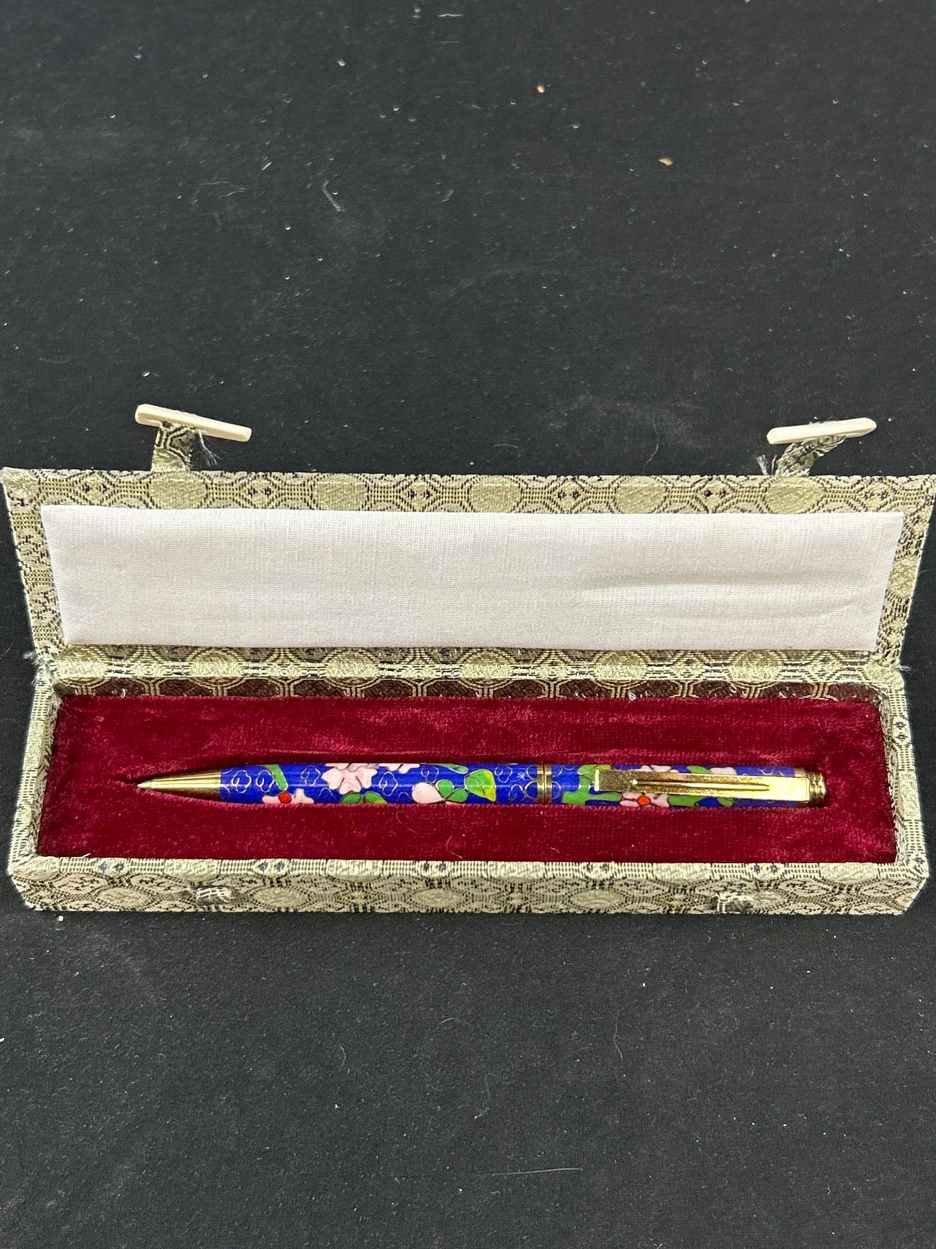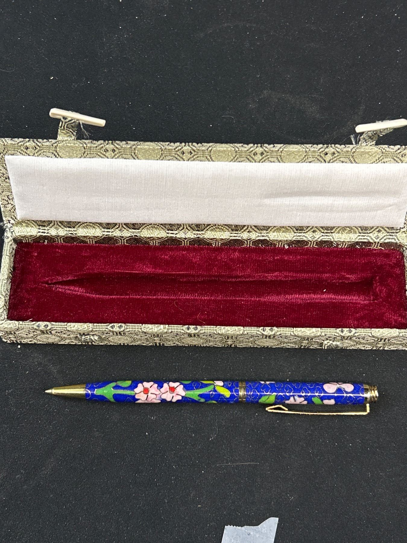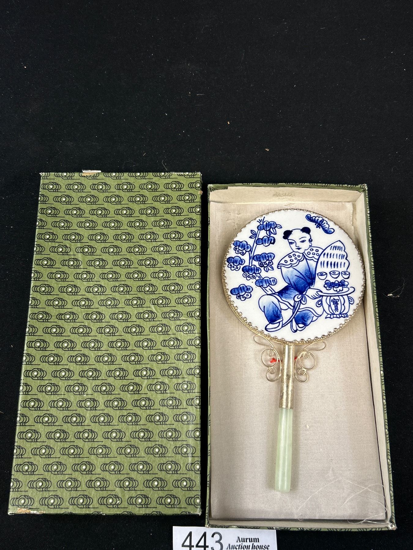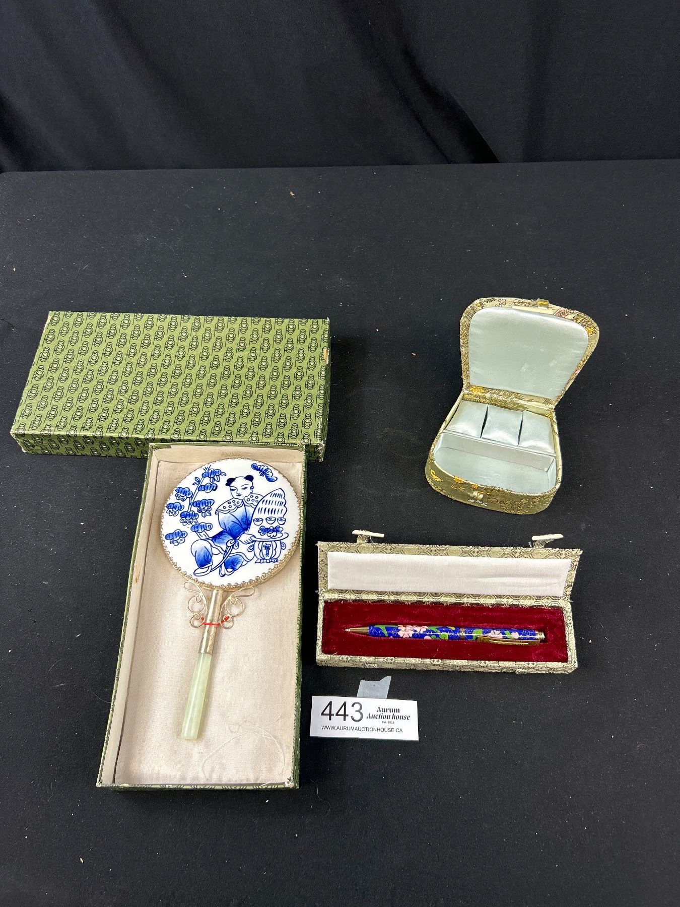 Vintage Jade Handled Mirror, Cloisonne Pen and Jewelry Box