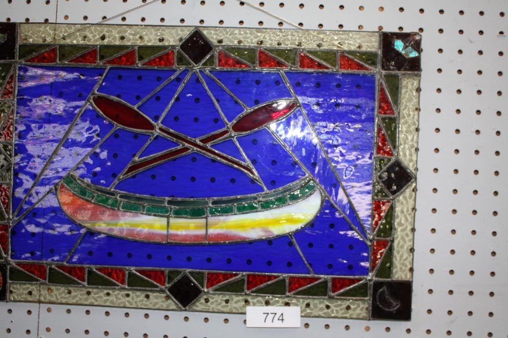 Vintage Leaded Glass Wall Art - Canoe
