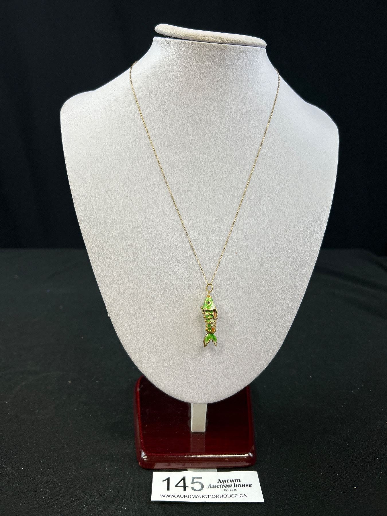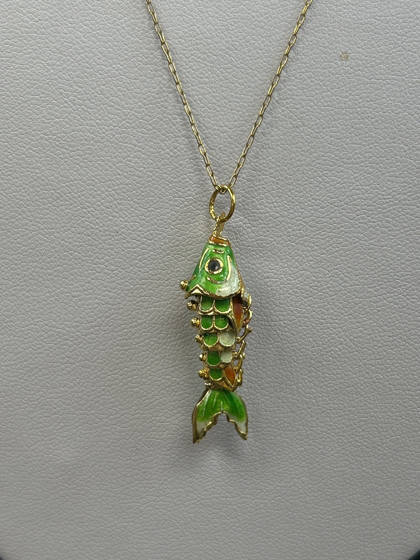 Vintage Marked 1/20 12K Gold Necklace Fish Enamel Pendant Lovely!