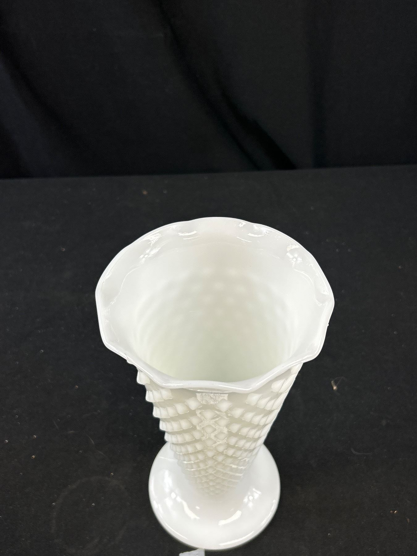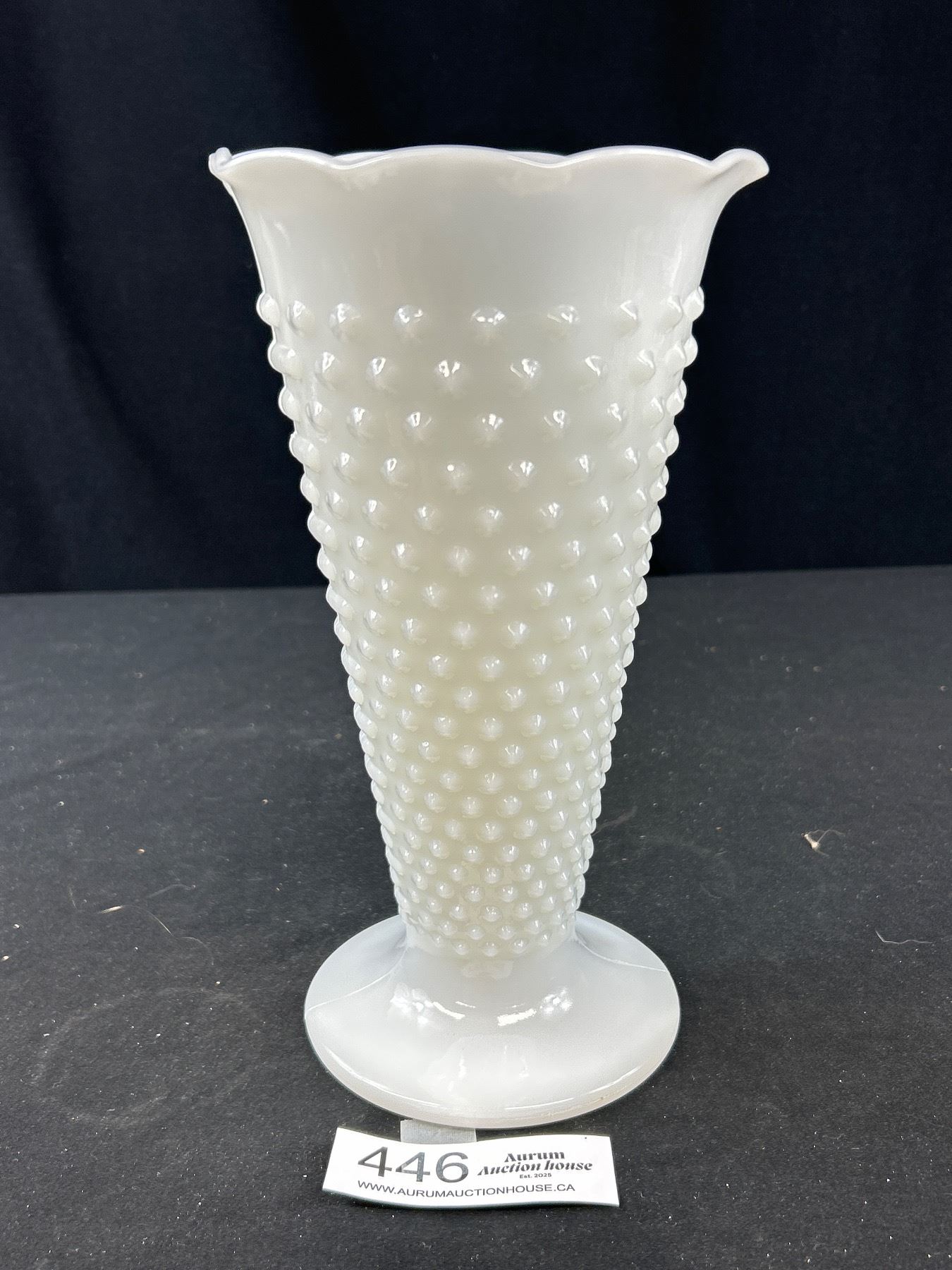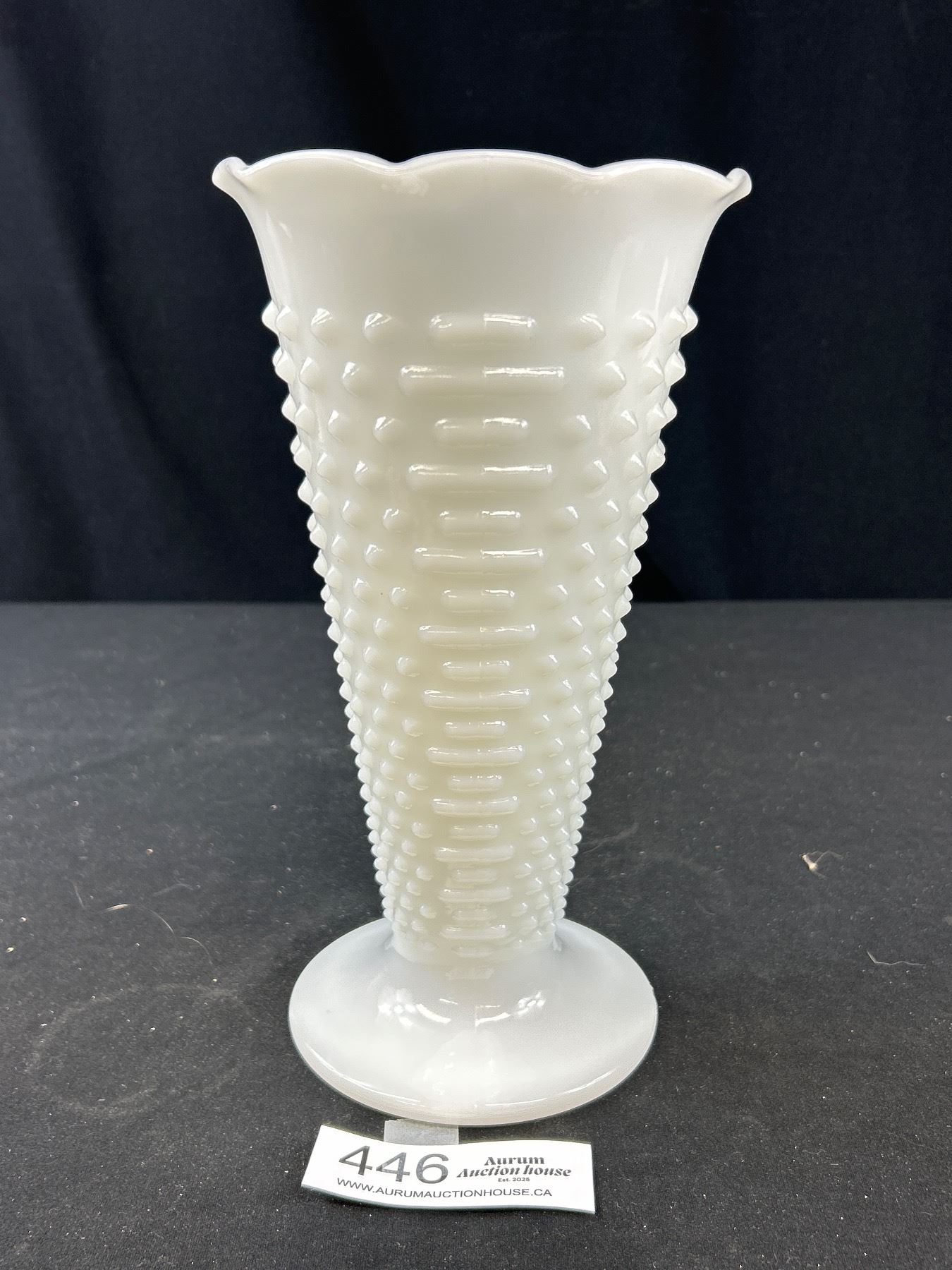 Vintage Milk Glass Hobnail Dots Dash Ruffled Edge 10" Vase
