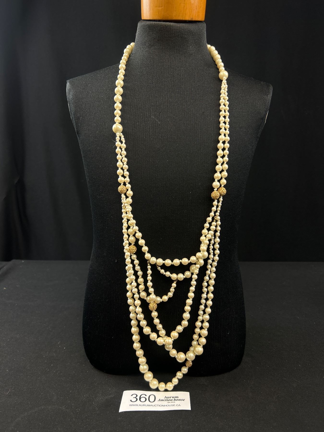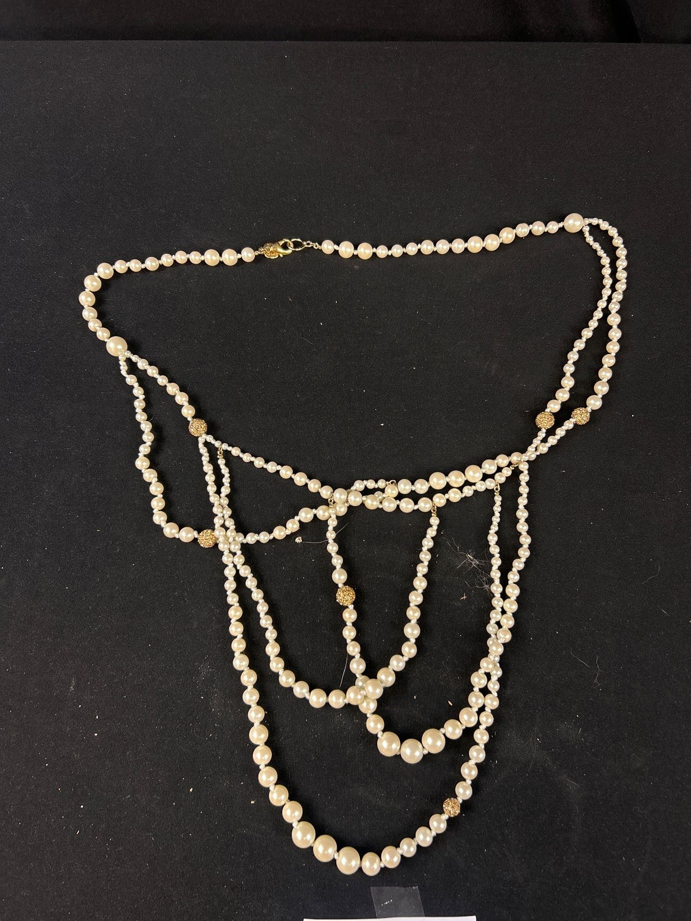 Vintage Multi Strand Hand Knotted Pearls Necklace Gold Label Marked Carolee Lux