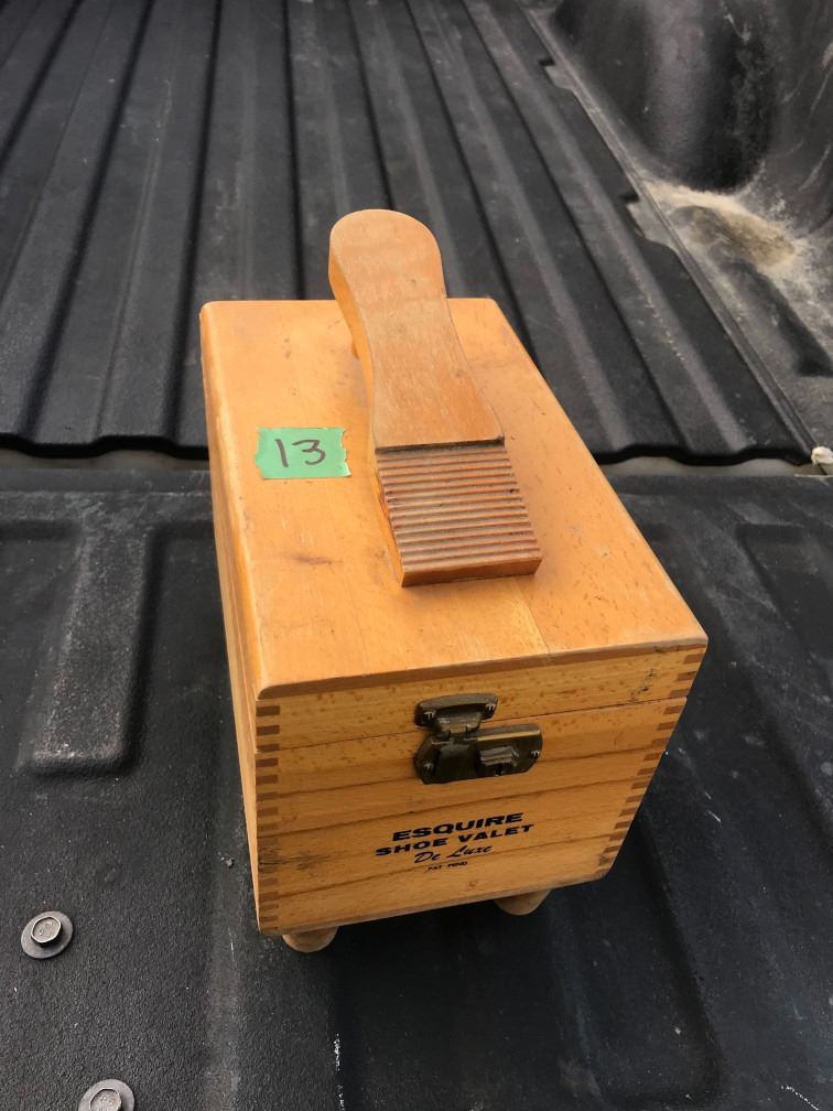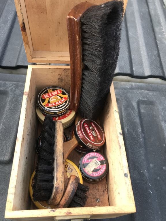 Vintage Shoe Shine Wood Stand with Contents
