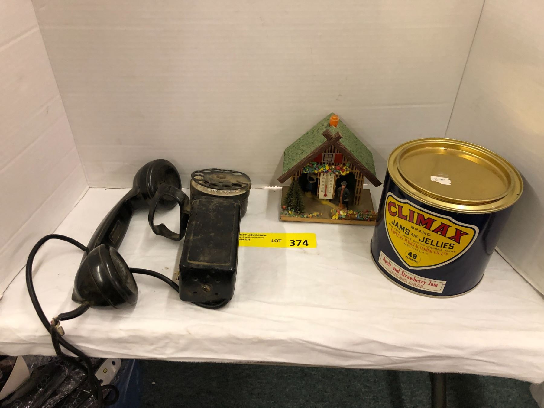 Vintage Telephone, Old Climax Jams & Jellies Can, and Vintage Thermometer