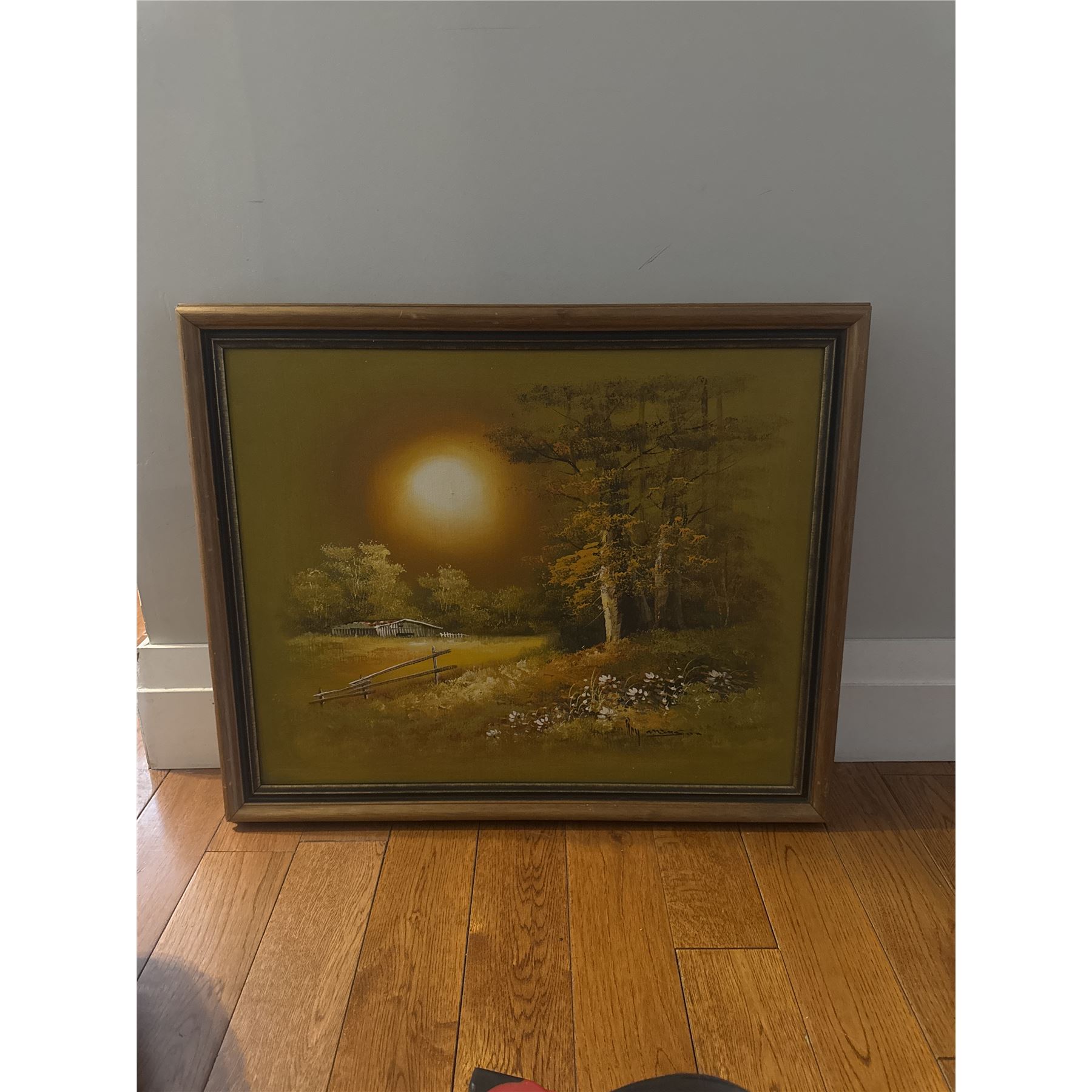 Vintage oil painting of a landscape measures 22.5 inches wide and 18.5 inches tall