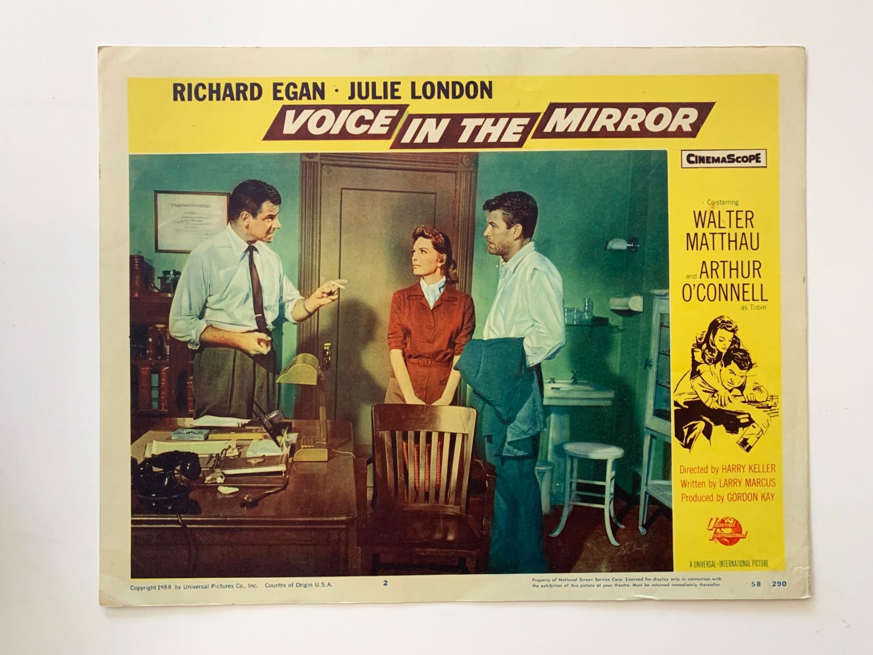 Voice in the Mirror original 1958 vintage lobby card on heavy card stock. 11x14 inches