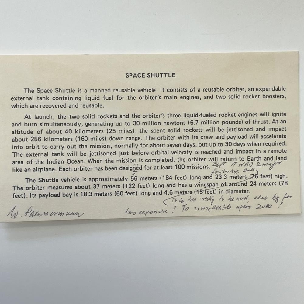 W. Pressernan signed Space Shuttle card. 6x3 inches