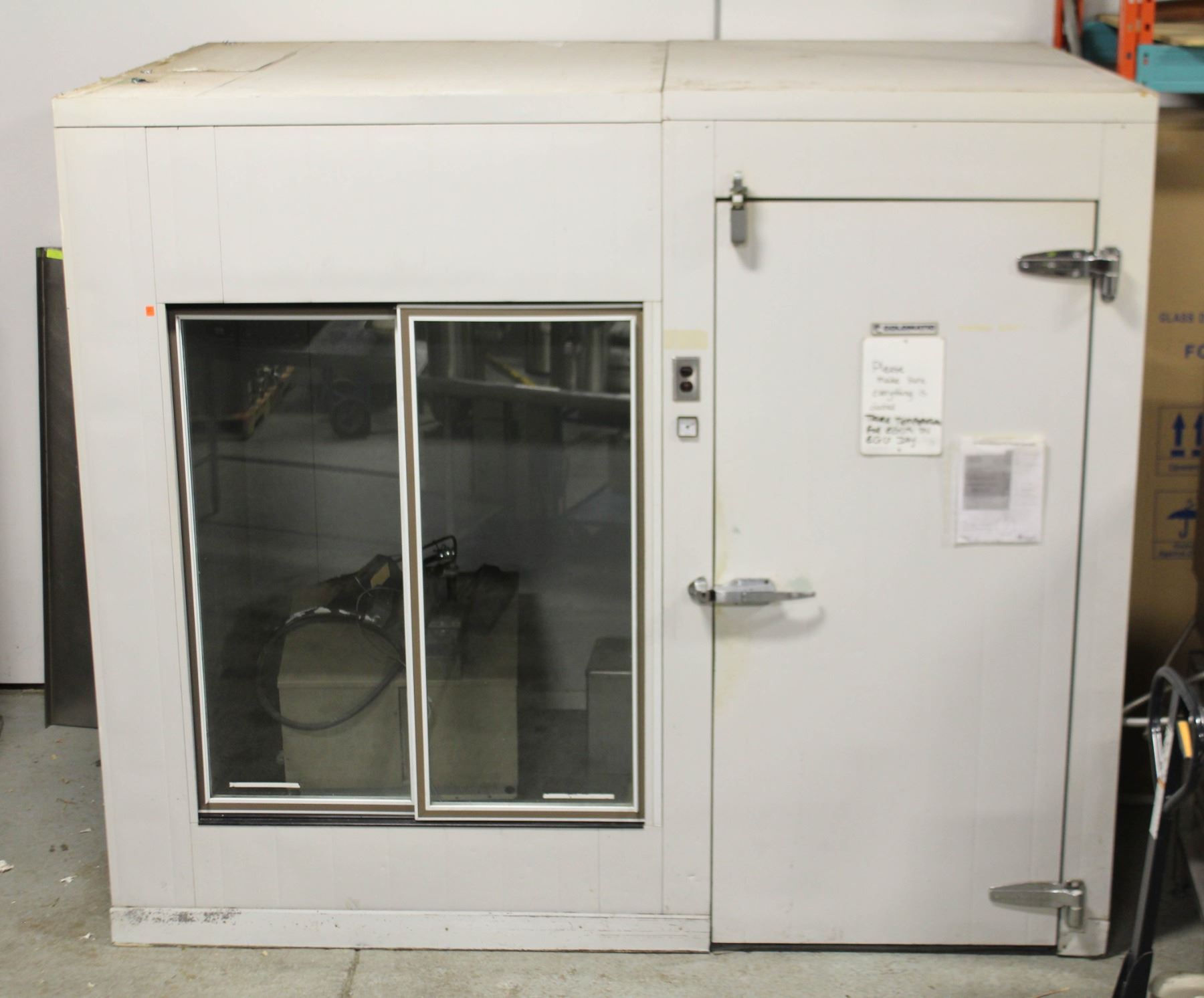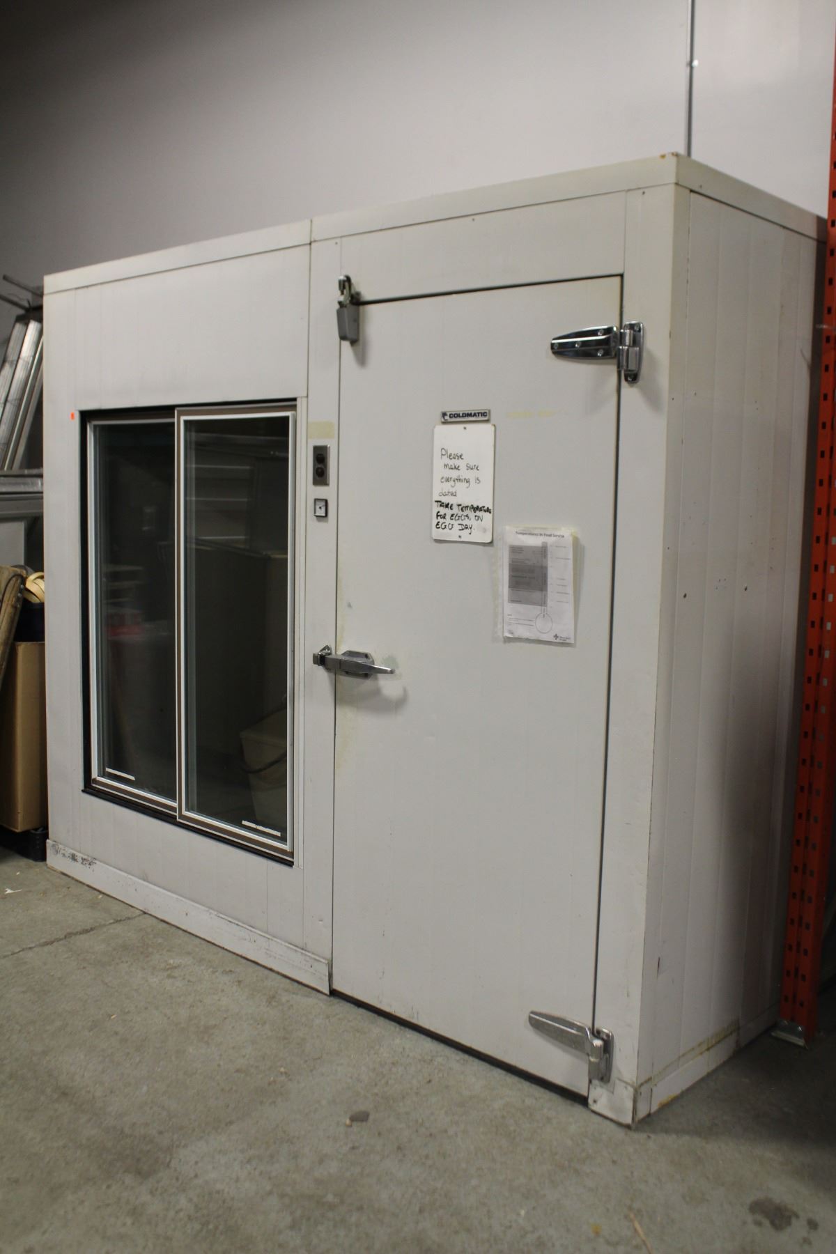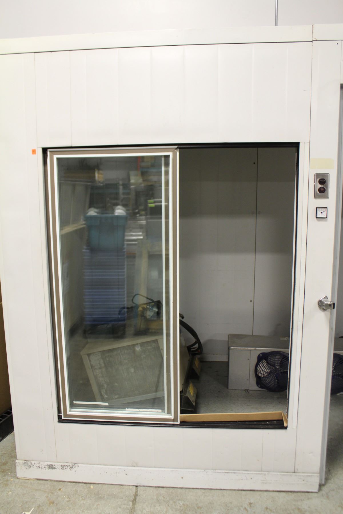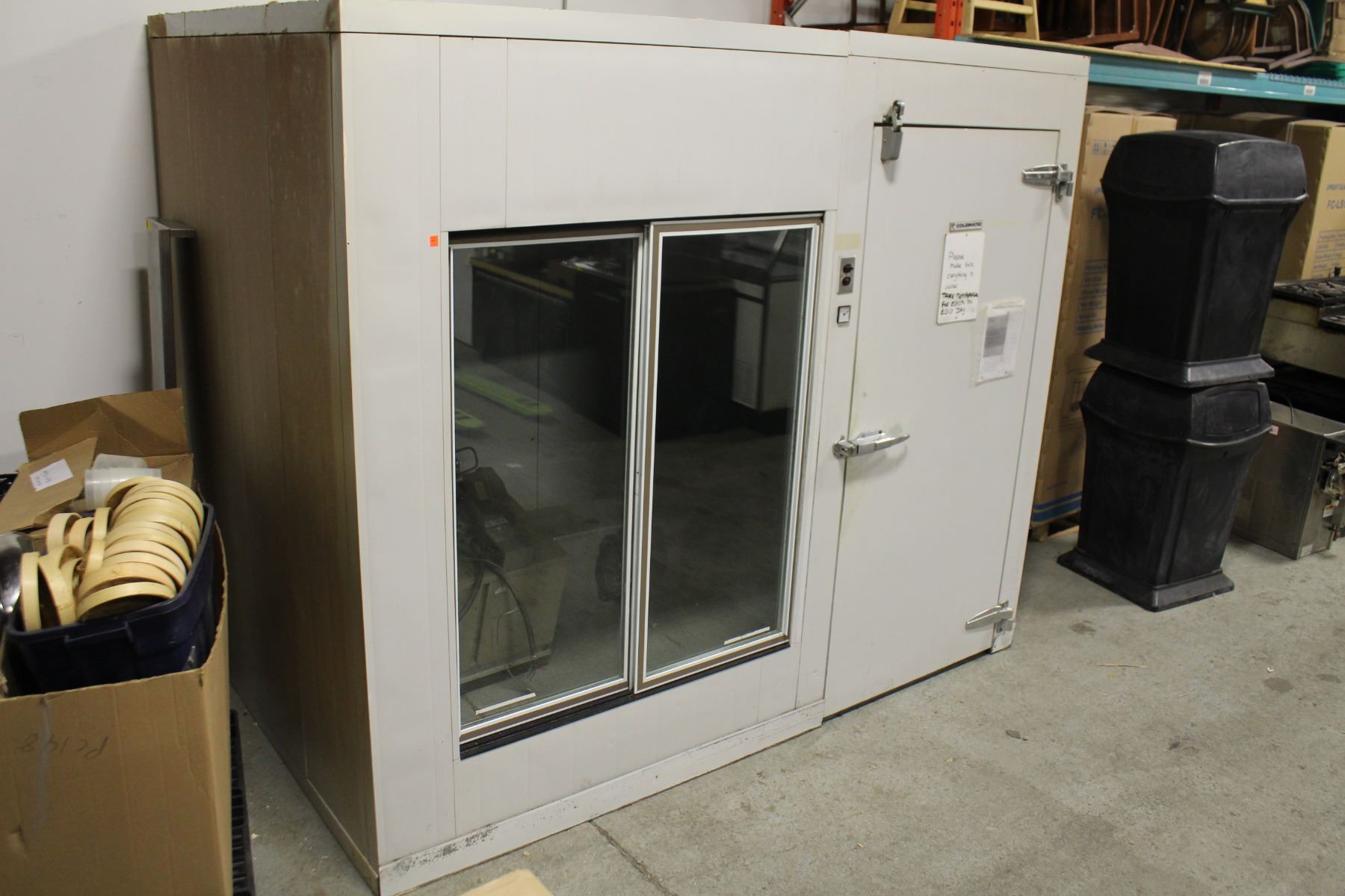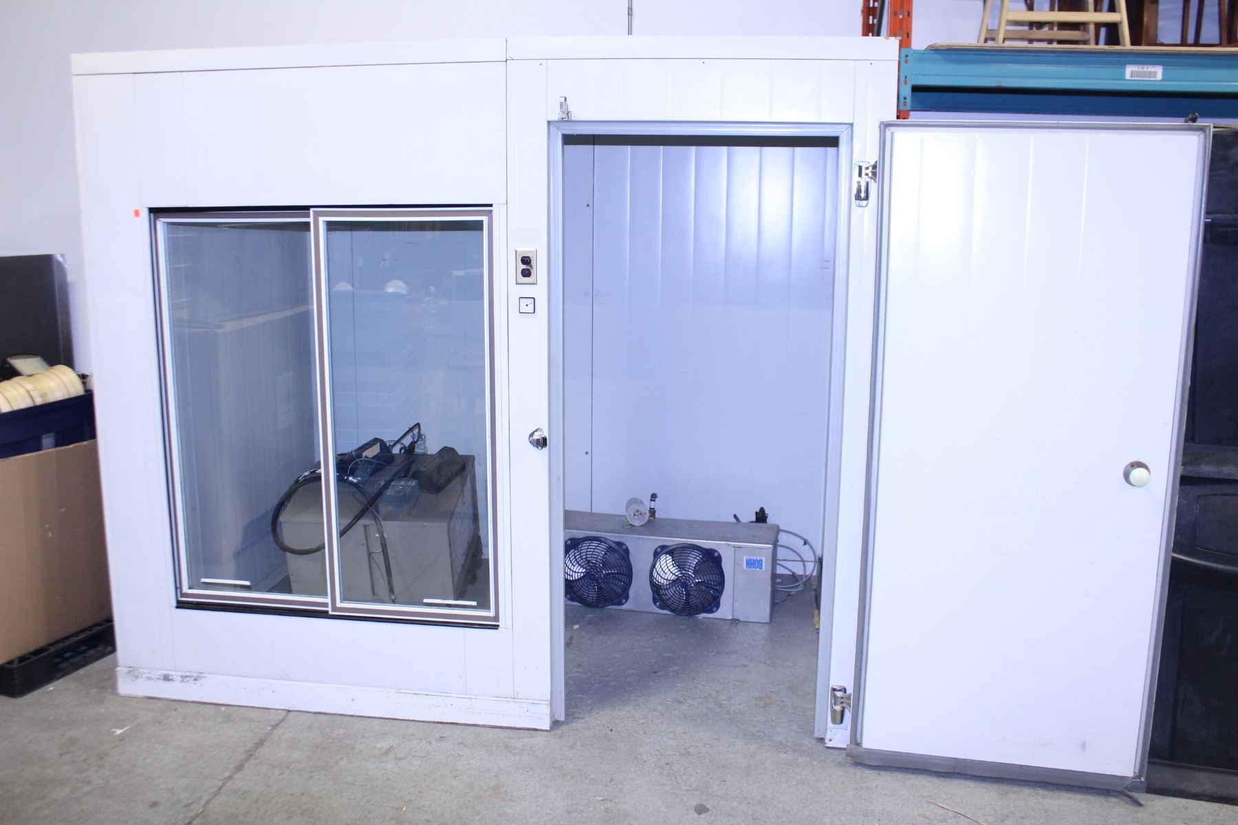 WALK-IN REMOTE COOLER W/ GLASS DOORS. 106.5" X 71" X 71" X 43" DOOR SIZE: 71" X 43" COMPLETE REMOTE COOLED UNIT. INCLUDES BOHN COMPRESSOR AND BOHN FAN COIL.