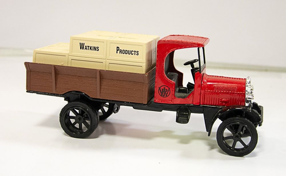 WATKINS PRODUCTS RED/WHITE TRUCK PIGGY BANK