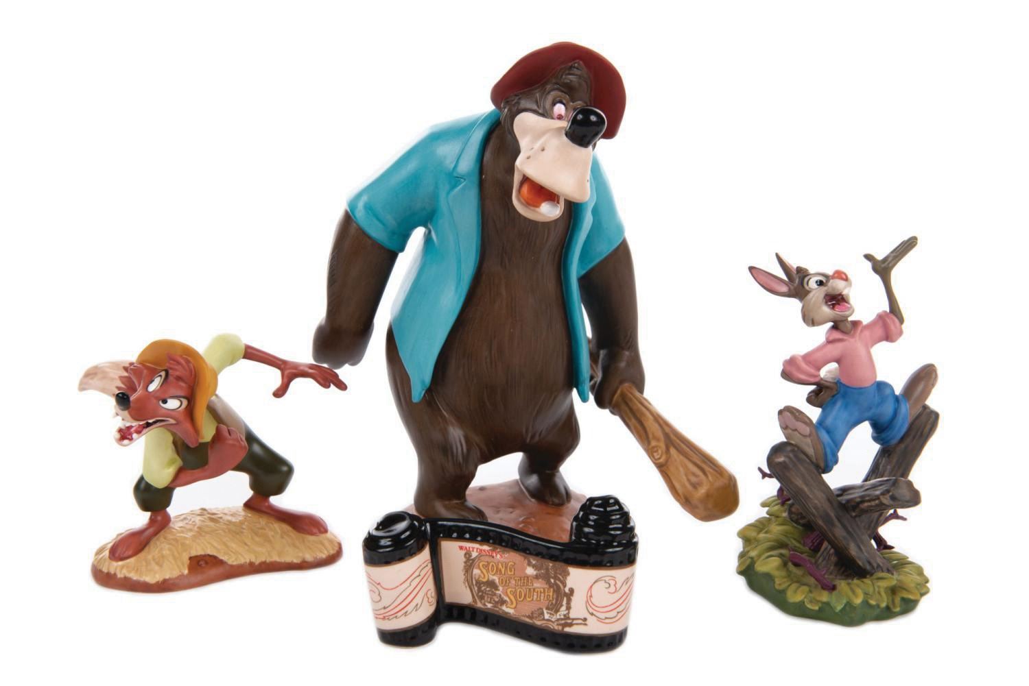 (Disney, c.1996-97) A set of (4) Walt Disney Classics Collection Song of the South figurines, signed by Frank Thomas & Ollie Johnston. Included are Brer Fox, Brer Rabbit, Brer Bear, and the Opening Title scroll. The Brer Fox figure is a rare "Artist Proof" edition. The three character figures are signed under the bases by both Thomas and Johnston, who were responsible for animating the trio for segments of the feature film. Measuring from 2" to 7.5" tall, the figurines display in very fine condition, complete with their original boxes, packaging, and COAs.