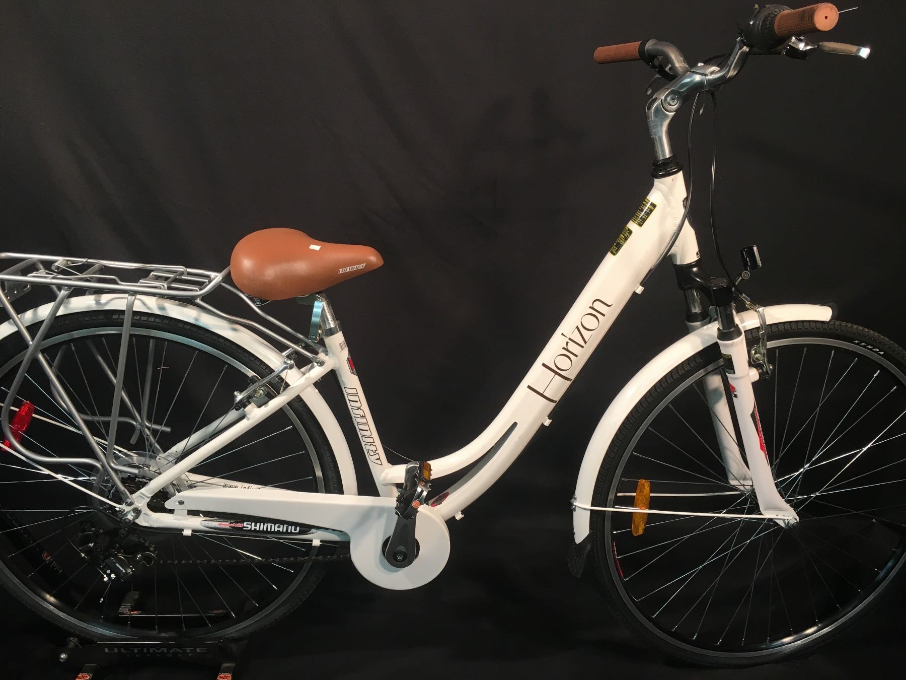 WHITE INFINITY HORIZON 6 SPEED EASY STEP FRONT SUSPENSION HYBRID BIKE