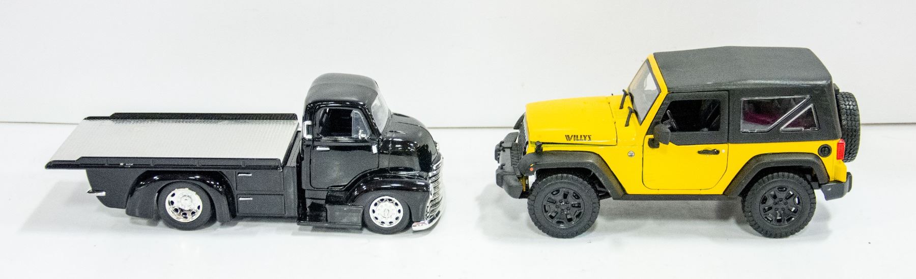 WILLY'S JEEP & CHEV FLATBED METAL CARS 1/24 SCALE