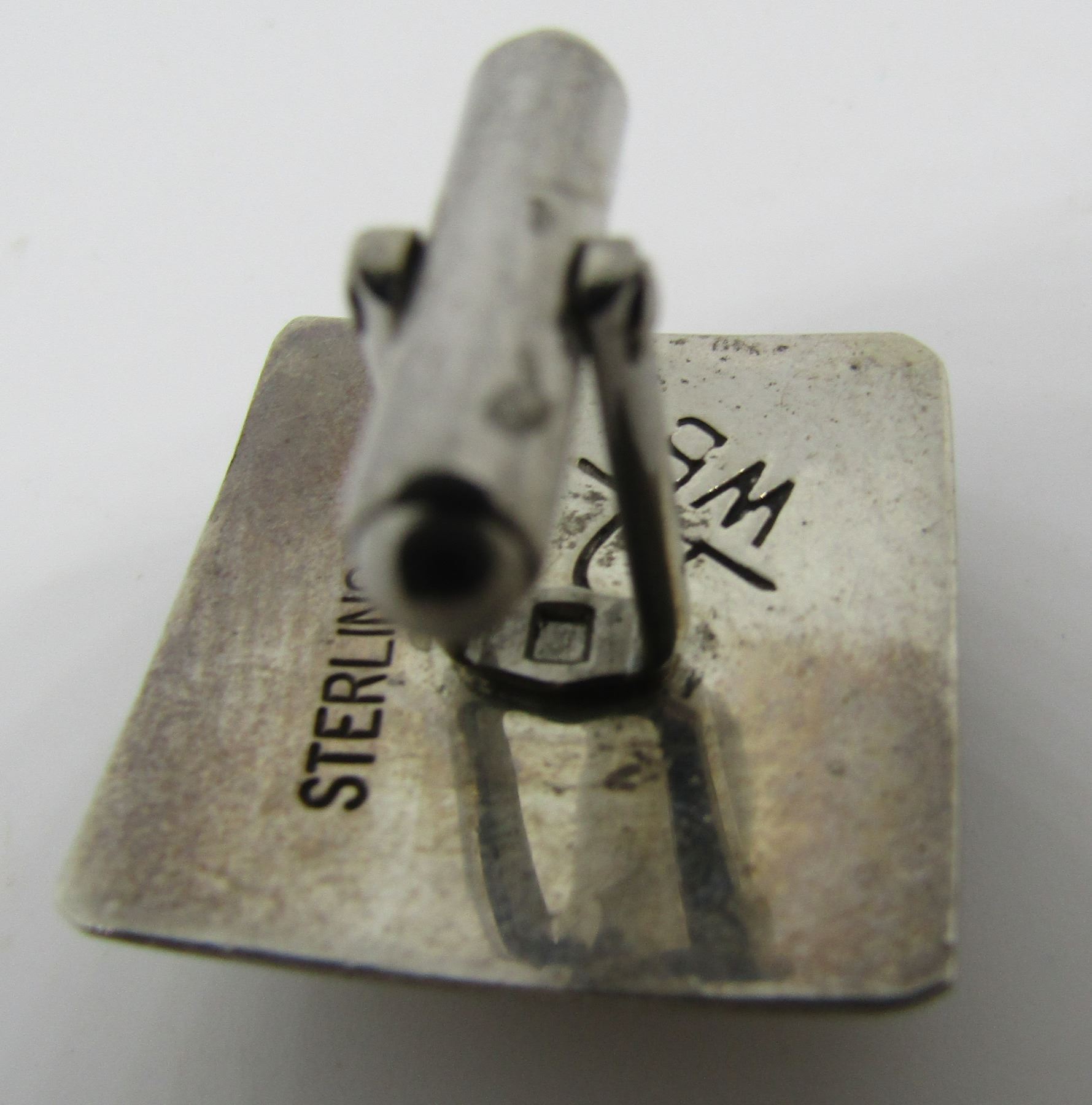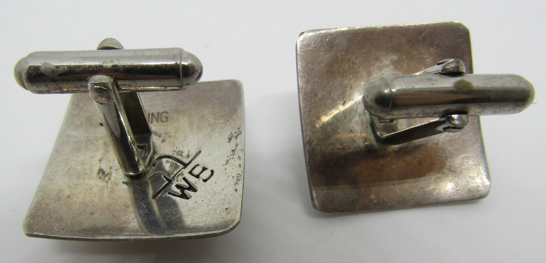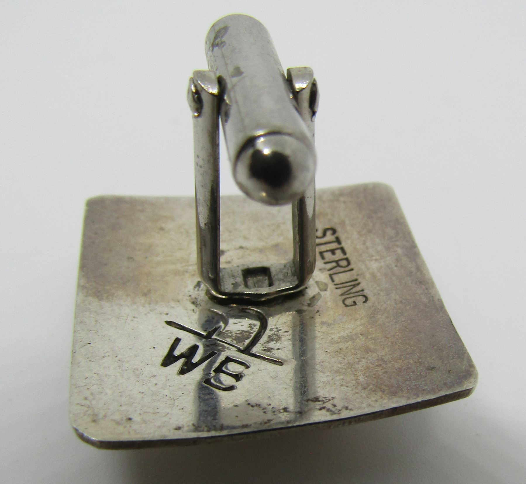 HALLMARKED "WB STERLING" VINTAGE ESTATE NATIVE AMERICAN SOUTHWEST NAVAJO INDIAN JEWELRY. BEZEL MOUNTED WITH SPIDERWEB TURQUOISE STONES. TOPS MEASURE 24MM BY 24MM. WEIGH 13.2 GRAMS. EXCELLENT USEDCONDITION. USA SHIPPING $5.