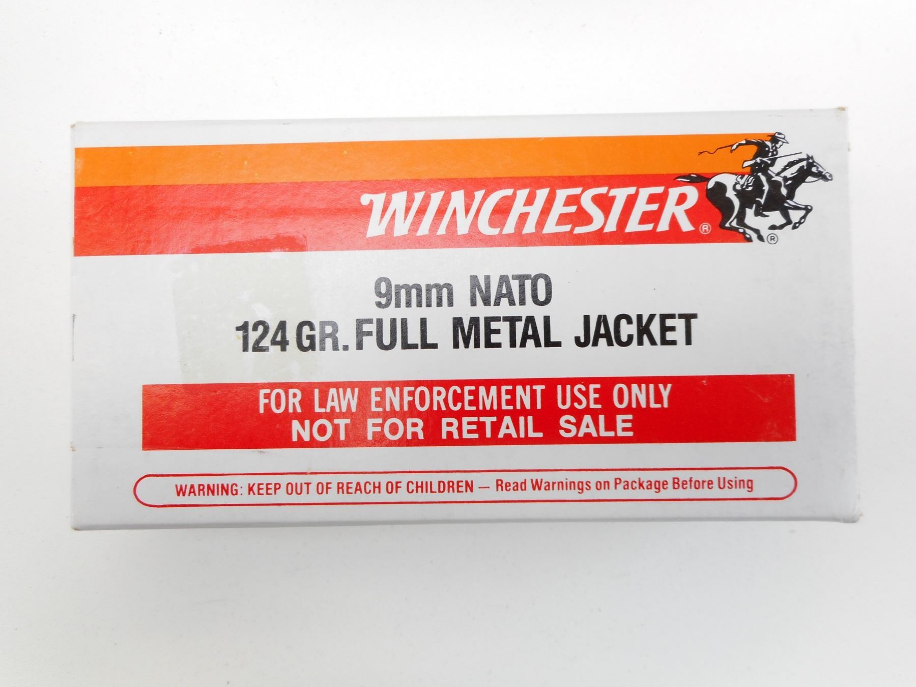 WINCHESTER 9MM NATO AMMO , 50 RNDS WINCHESTER 9MM NATO, 124 GRNS, FMC