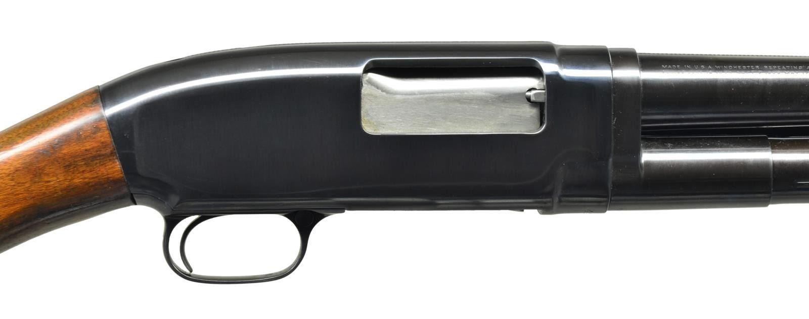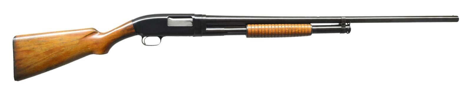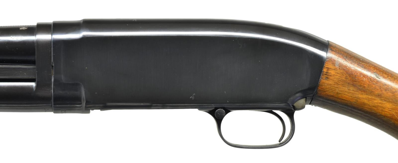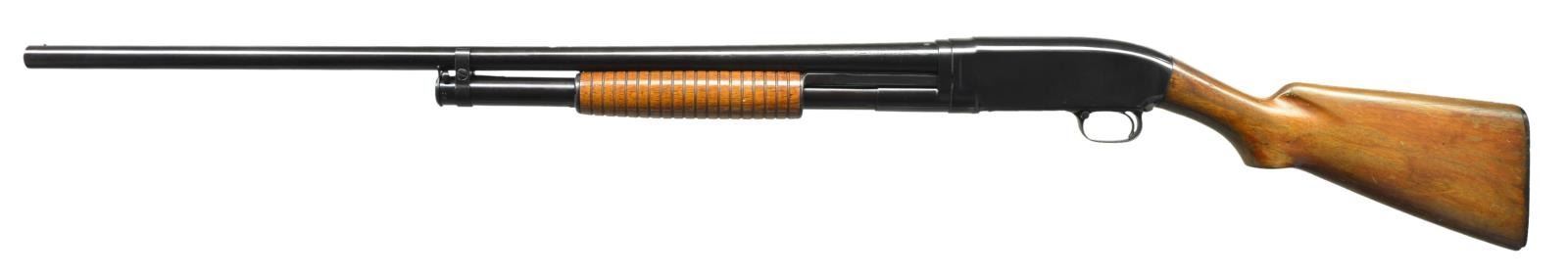 Cal. 12 Ga. S# 448412. Bbl. 30" plain of nickel steel w/ added full length matting & steel bead. Fixed mod choke. Sm. rnd. grooved forearm & early style pistol grip stock. LOP: 13 5/8" over original buttplate. Mfg. 1926. CONDITION: 98% brightly polished reblue finish. Forearm has lightly worn original finish. Original stock finish shows wear & handling marks. Toe of stock & buttplate have sm. chips. Good mechanics. Bore shows some very light pitting. (21-2230/DS). CURIO. $400-600.