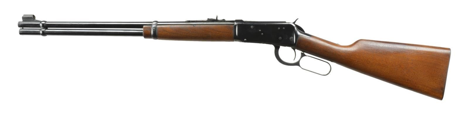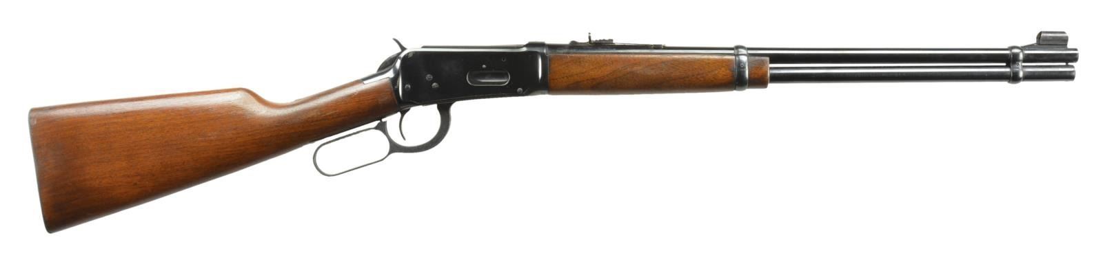 Cal. 30-30. S# 2208446 (1956). Standard configuration w/ 20" bbl. & blue finish. CONDITION: very good overall w/ light marks throughout. Receiver has 2 areas of deep marks on right sight. Forearm has gouges on right side. Very good bore. (22-1931/MD). CURIO. $400-600.